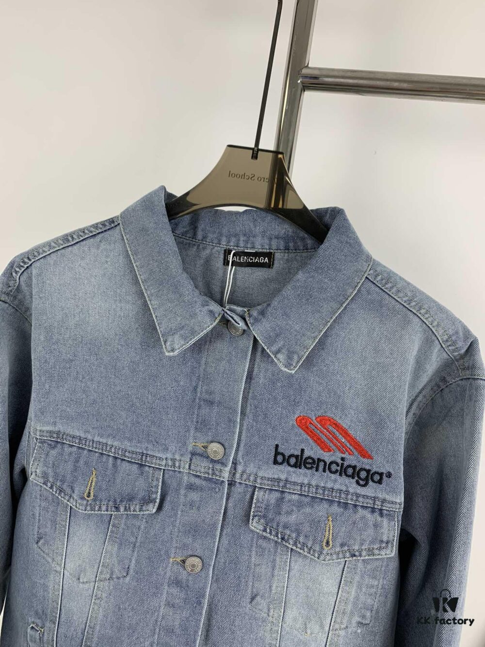 New Balenciaga Streetwear 3M Embroidery Unisex High-Quality Washed Denim Jacket