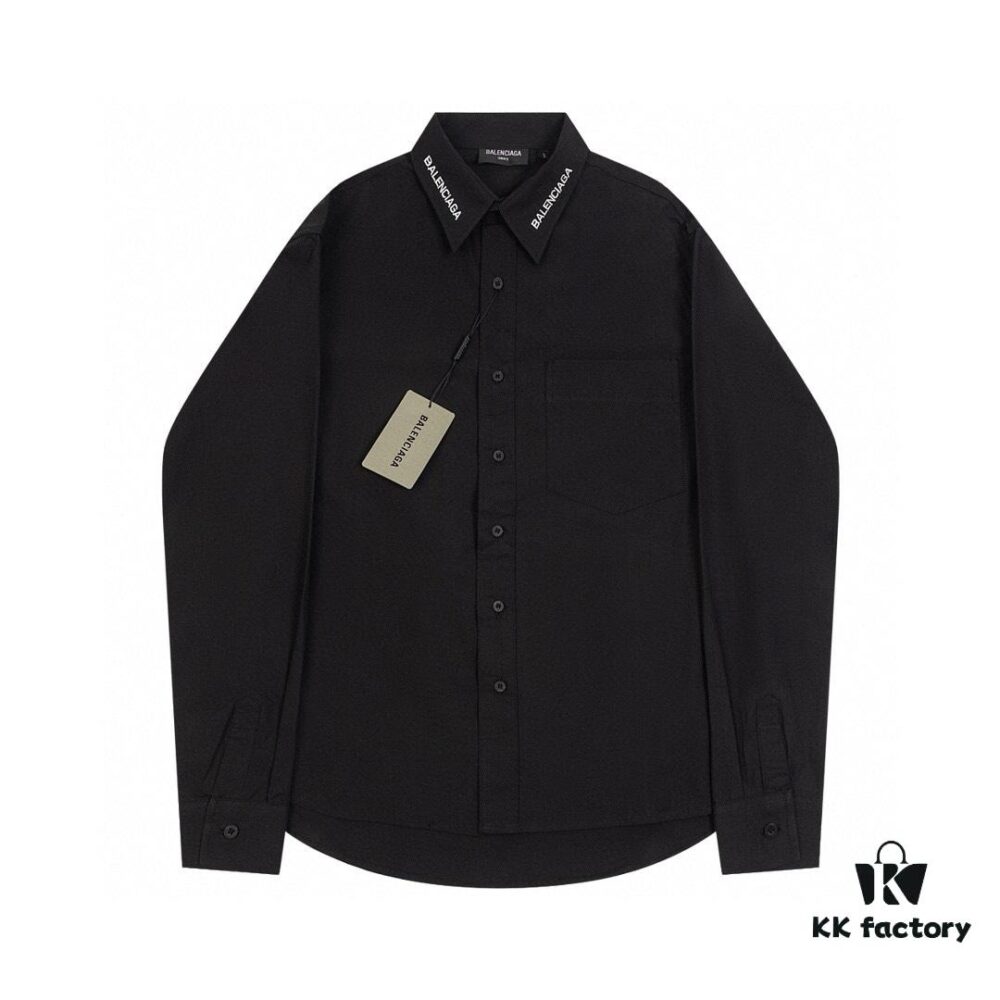 New Balenciaga BLCG 24SS Long-Sleeve Shirt with Embroidered Lettering at Collar, Minimalist Design