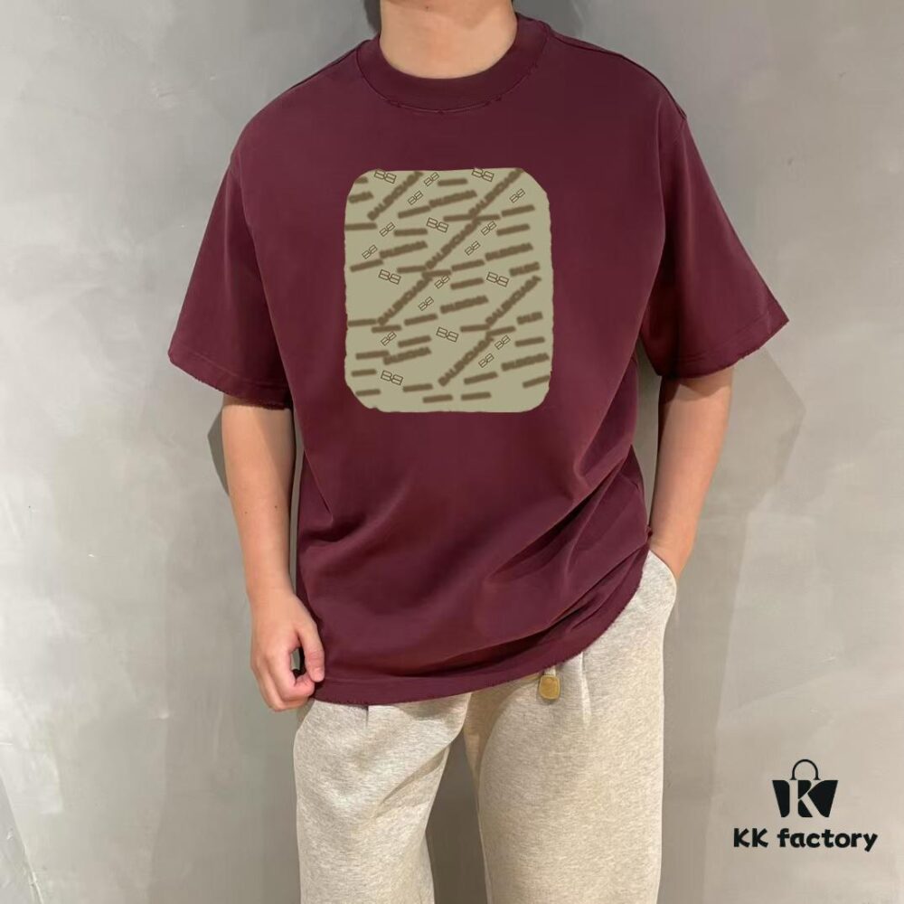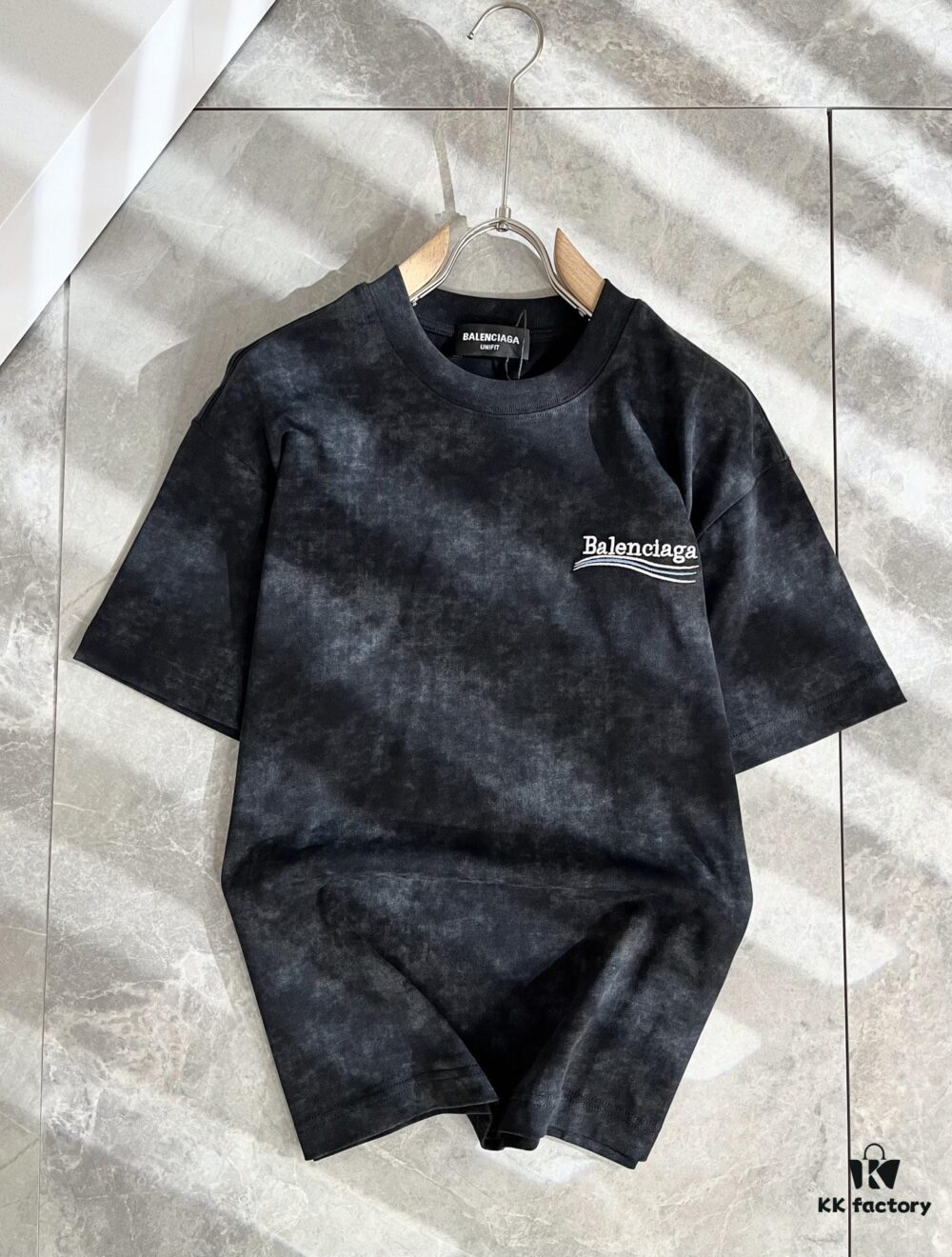 BALENCI*GA Paris 2025 Summer New Arrival Gradient Distressed Custom Fabric 320g Logo Print Short Sleeve T-Shirt Unisex