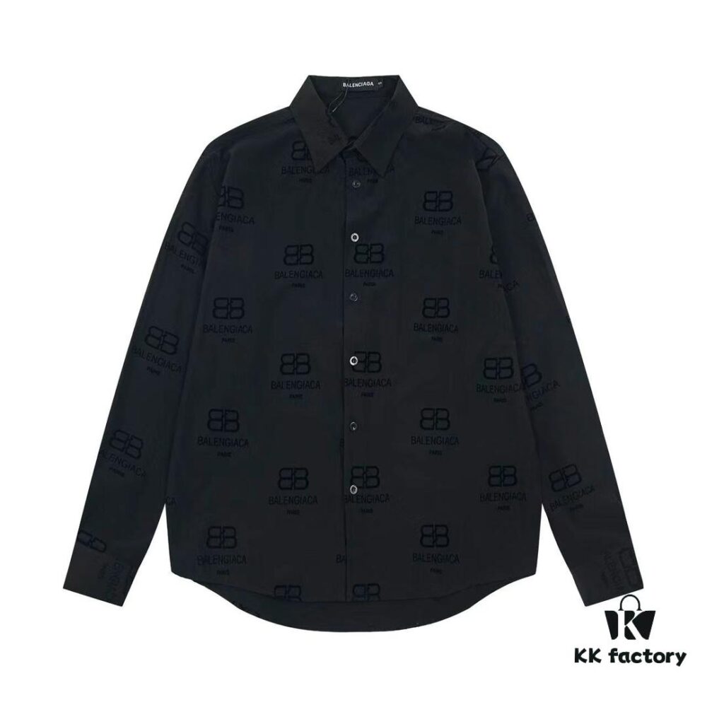 Balenciaga 2024 SS New Arrival Flocked Print Velvet Shirt Unisex with Logo Buckle Closure