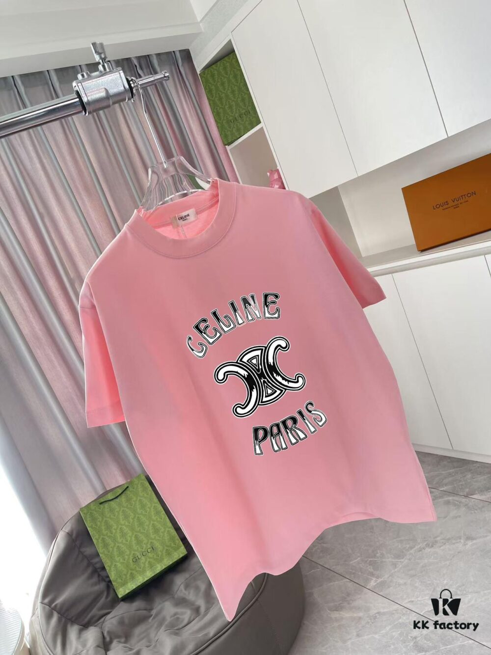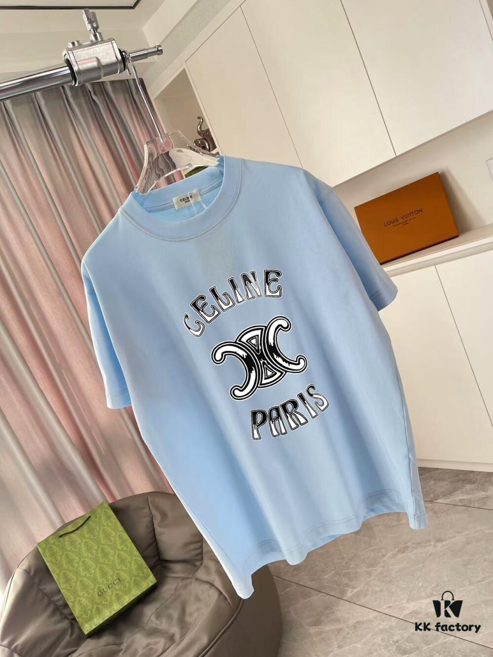 Celine 2025 Summer New Arrival Individual Letter Logo Print Custom Fabric 300g Short Sleeve T-Shirt Unisex