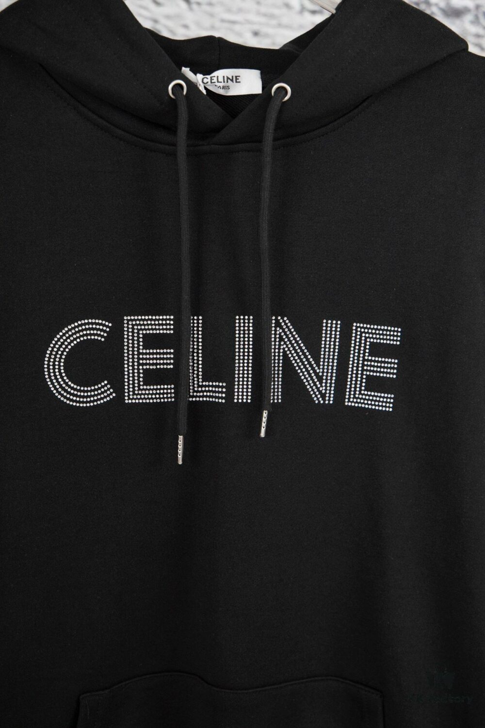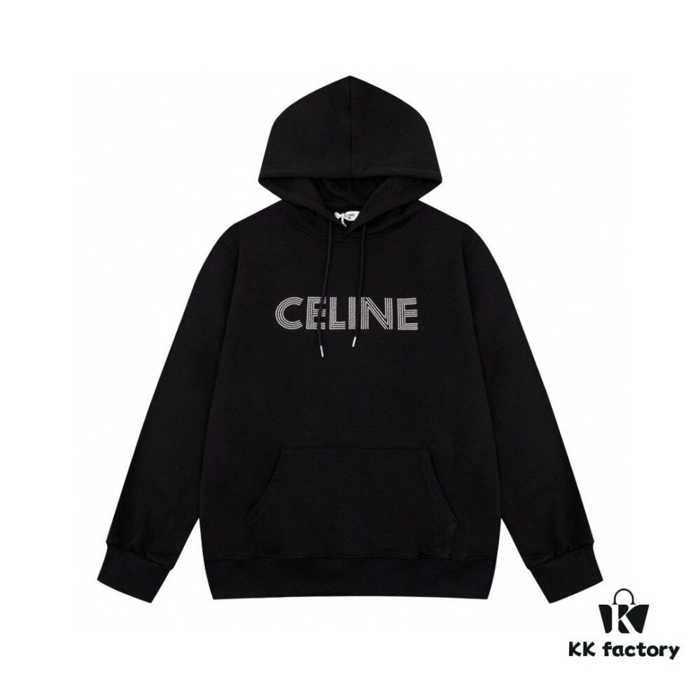 Celine 23SS Rhinestone Letter Embellished Hoodie Unisex High-End Version