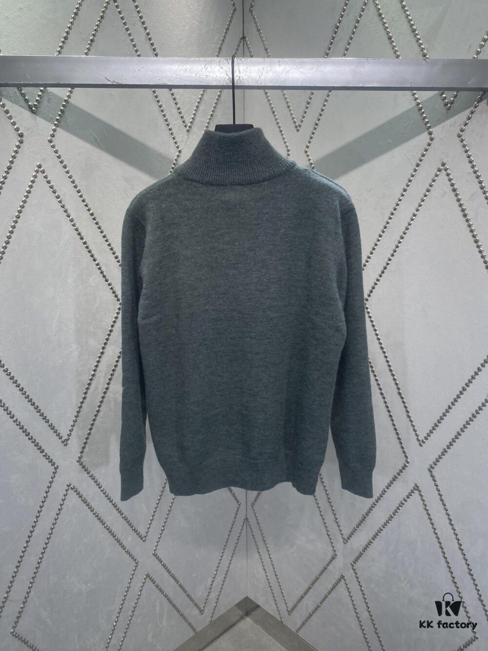 Celine 24SS Autumn-Winter New Embroidered Knitwear, Featuring Bulked Wool Blend for Soft, Comfortable Skin-Feel with Signature Triumph Arch Embroidery on Front Chest, Half-Zip Design Exudes Refined Dynamism and Effortless Elegance, Perfect for Relaxed, Comfortable Layering – Unisex Style