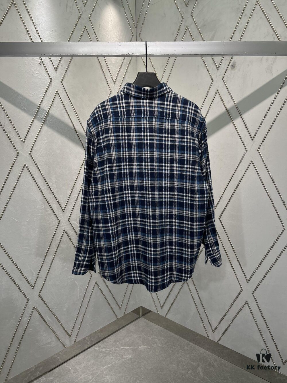 Celine 25SS New Checkered Collar Loose Long-Sleeve Shirt Navy Blue