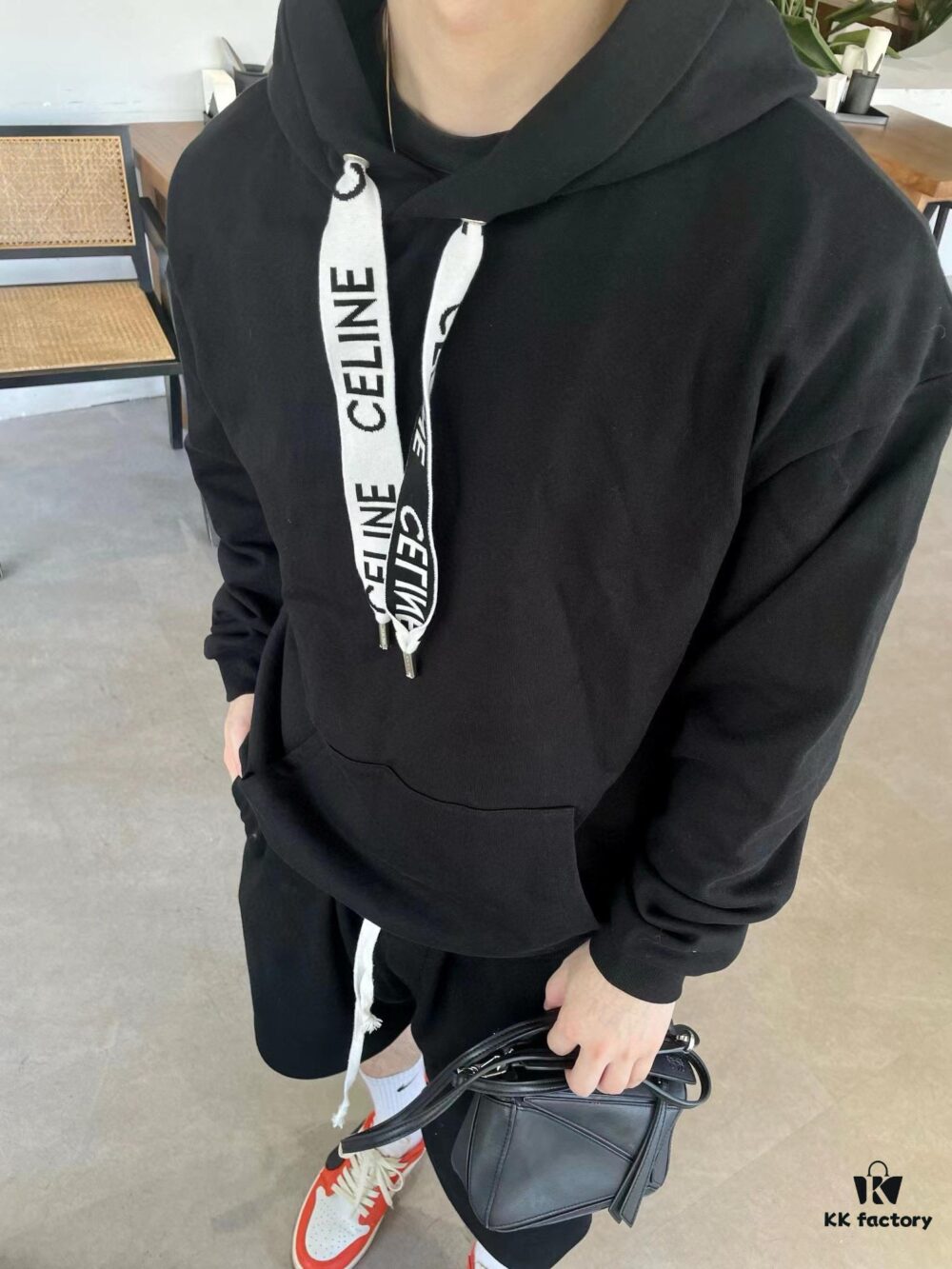 CELINE Triumph Arch Knit Hoodie – Classic Letter Design, Heavyweight 400g Fabric, Imported Matte Black Print