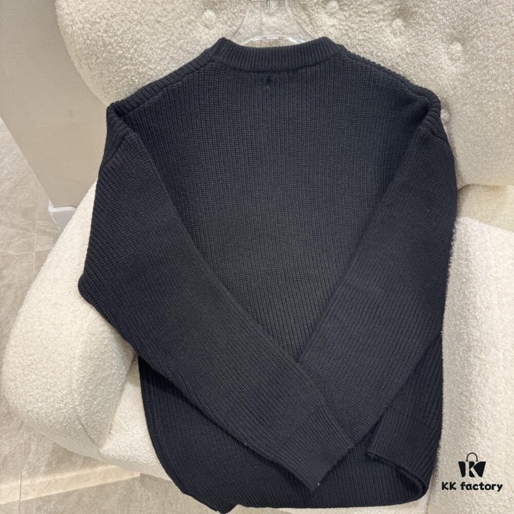 Celine Triumph Knit Long-Sleeve Sweater, Spring 2025 Collection, Embroidered Logo, Premium Yarn Wool Blend, Classic Short-Length Cut, Timeless and Flattering Fit