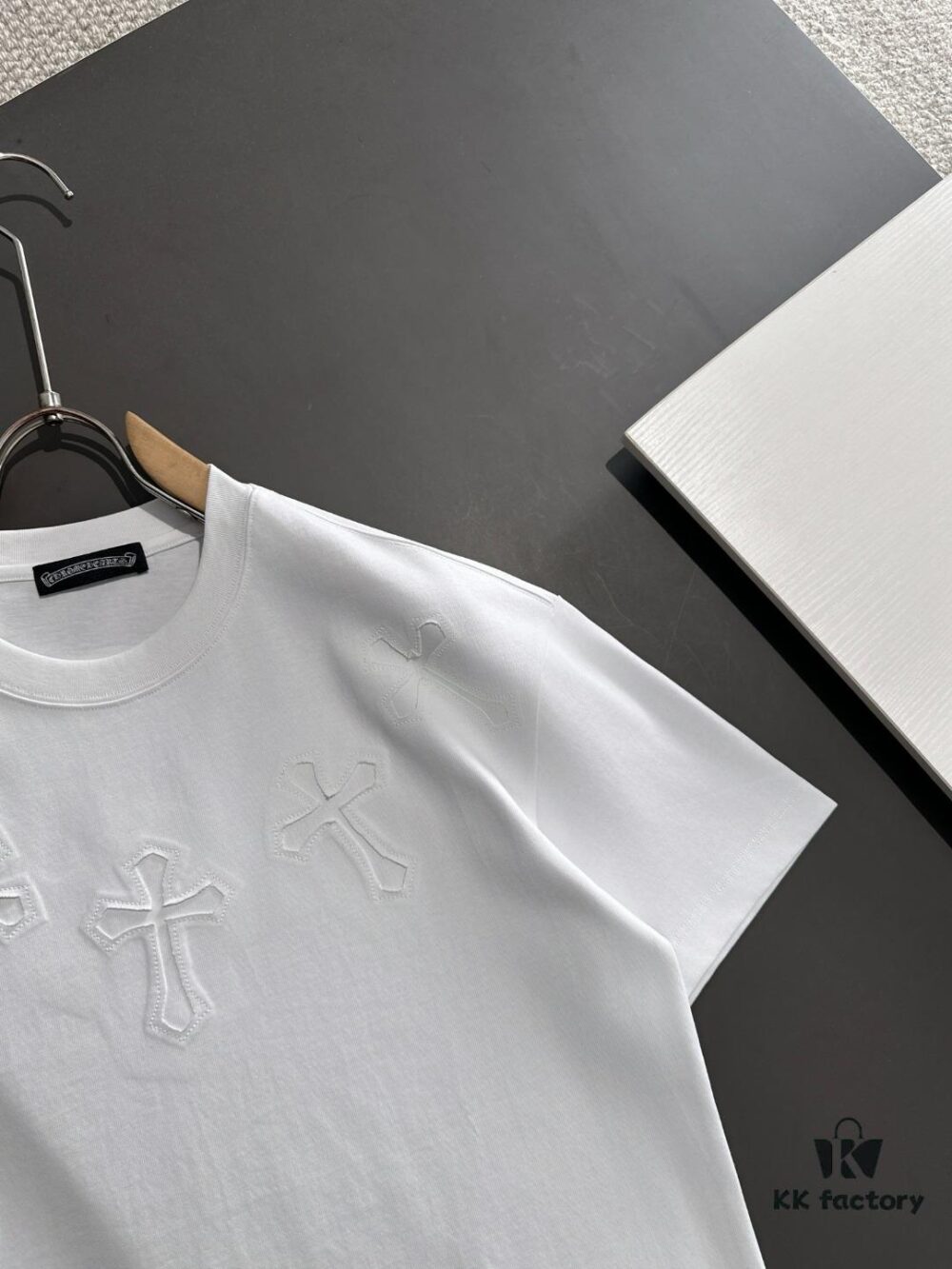 Chrome Hearts 2025 New Heavy Washed Leather Patch Embroidered Short Sleeve T-Shirt △ Original Fabric △ High Version △ Premium Quality Influencer and Celebrity Style △ 320g Heavy Garment Wash Embroidery with Horse Hoof Cross Graffiti Print △ Fully Labeled Unisex Tee Must-Have Versatile Design △ Colors: Black, White, Khaki