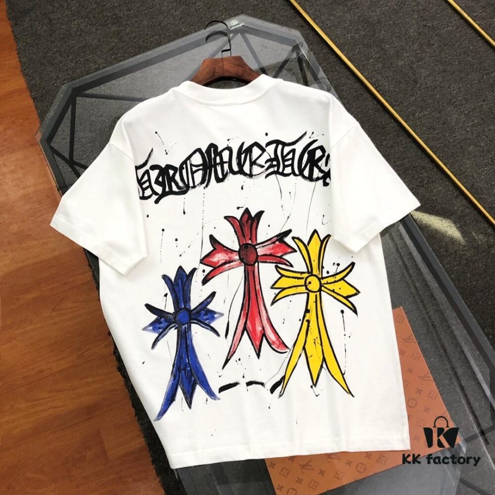 Chrome Hearts 2025 New Graffiti Print Short Sleeve T-Shirt △ Original Fabric △ High Version △ Premium Quality Influencer & Celebrity Style △ 320g Garment Washed △ Horsehoe Cross Graffiti Technique △ Fully Washed Finish △ Unisex Style △ Three Labels Complete △ Must-Have Basic Tee