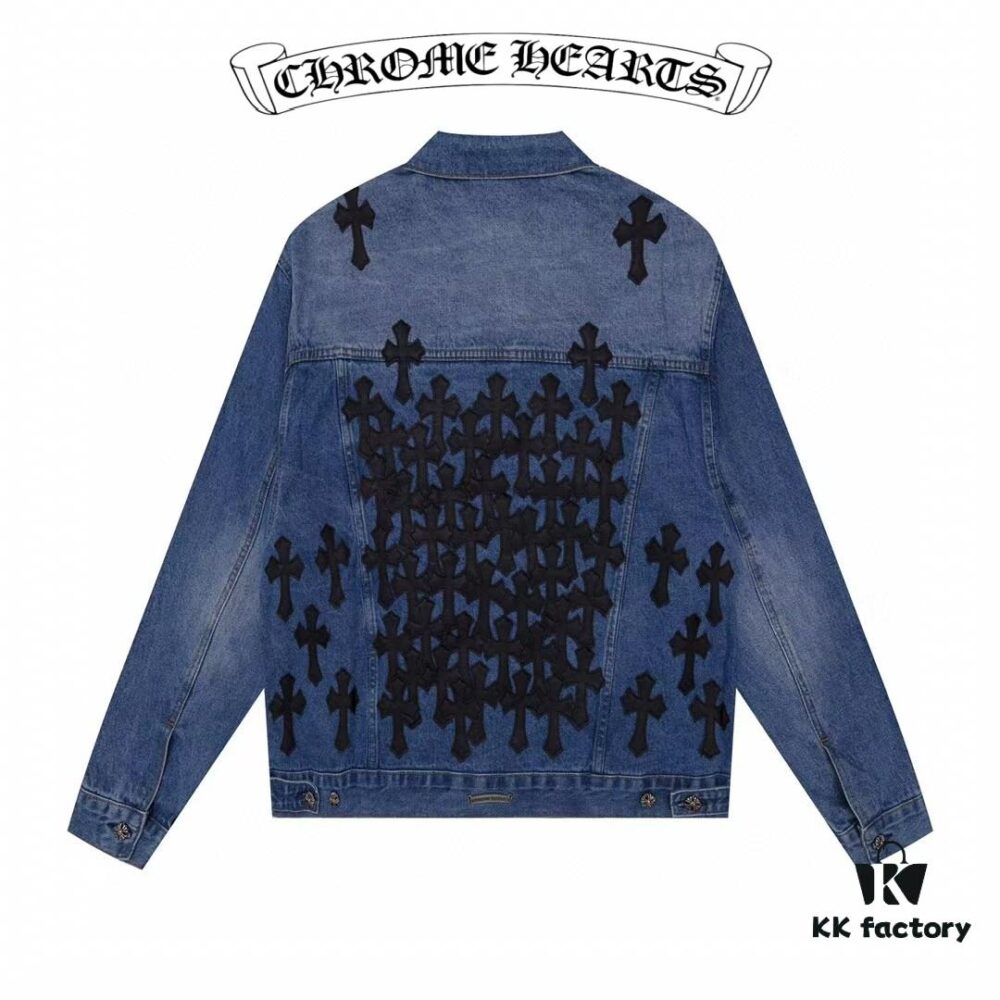 Chrome Hearts Couple’s Heavy Washed Denim Jacket with Leather Back Panel and Full Logo Design