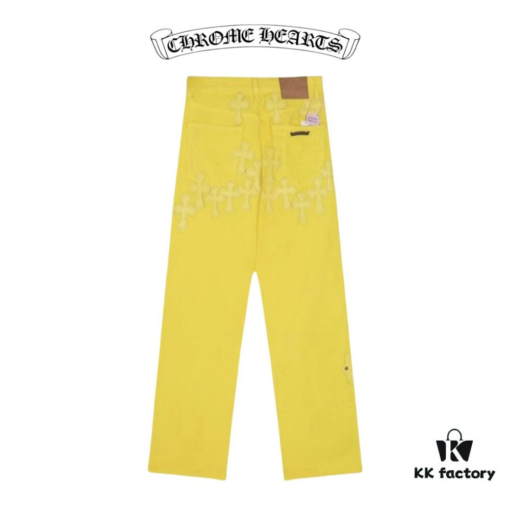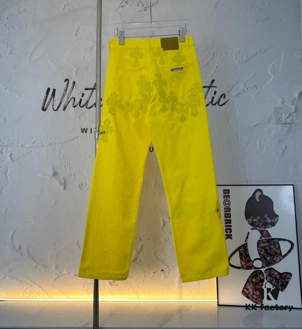 Chrome Hearts CH New York Limited Yellow Dopamine Denim Jeans Unisex Streetwear