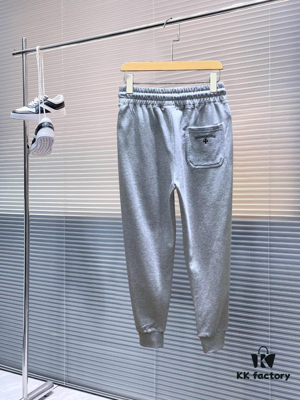 Chrome Hearts New Men’s Original Stock Casual Pants, Sweatpants, High-End Custom Fashion Versatile Style with 3D Embroidered Logo, Premium Imported 100% Cotton Knit Fabric and Metal Trims