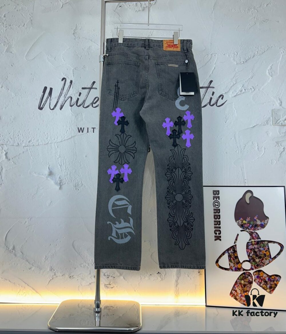 Chrome Hearts Official Exclusive Graffiti Painted Purple Bull Denim Jeans