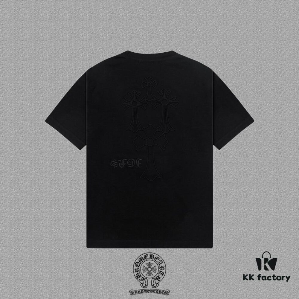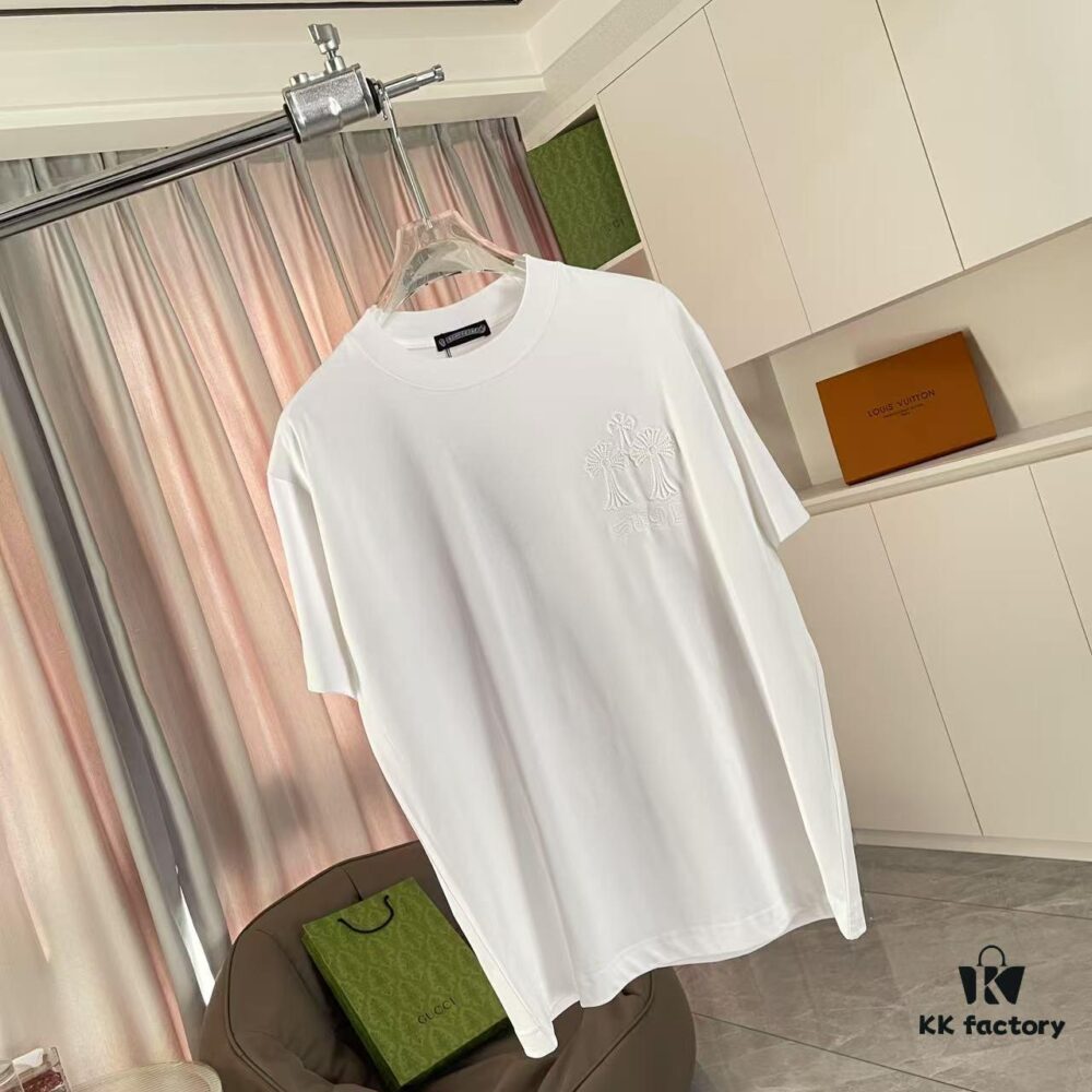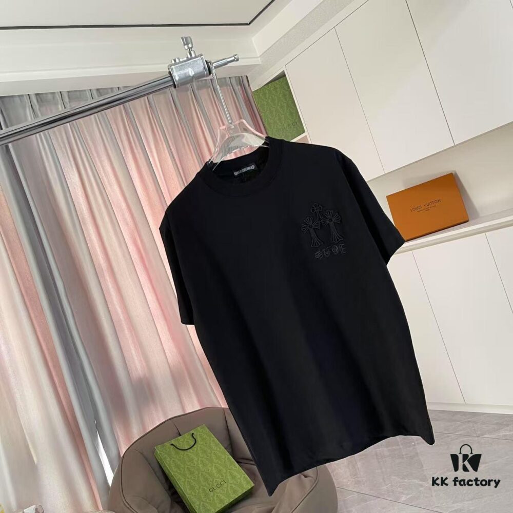 CH Chrome Hearts 2025FW Short Sleeve T-Shirt with Applique Embroidery, Premium 26s Double Yarn 300g Fabric, Heavyweight Material, Custom Stretch Ribbing Dyed in Same Dye Batch, Complete Three-Label Set, Unisex Design