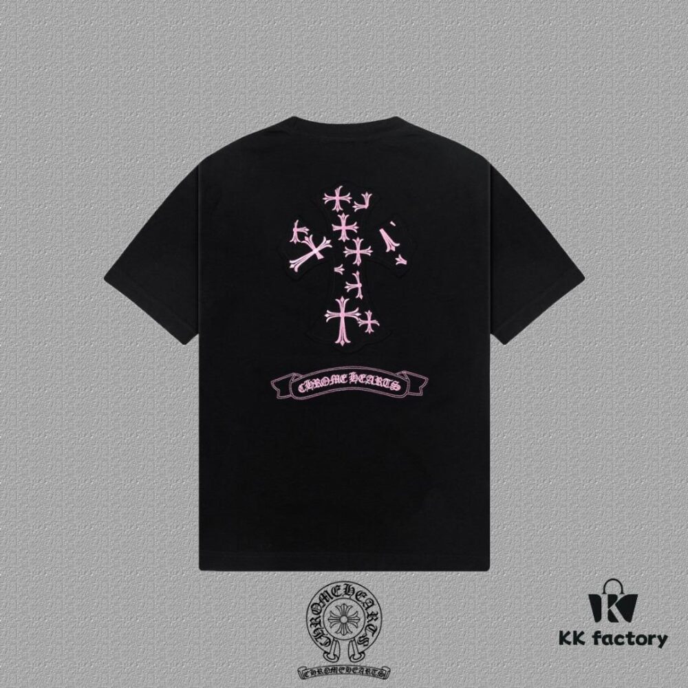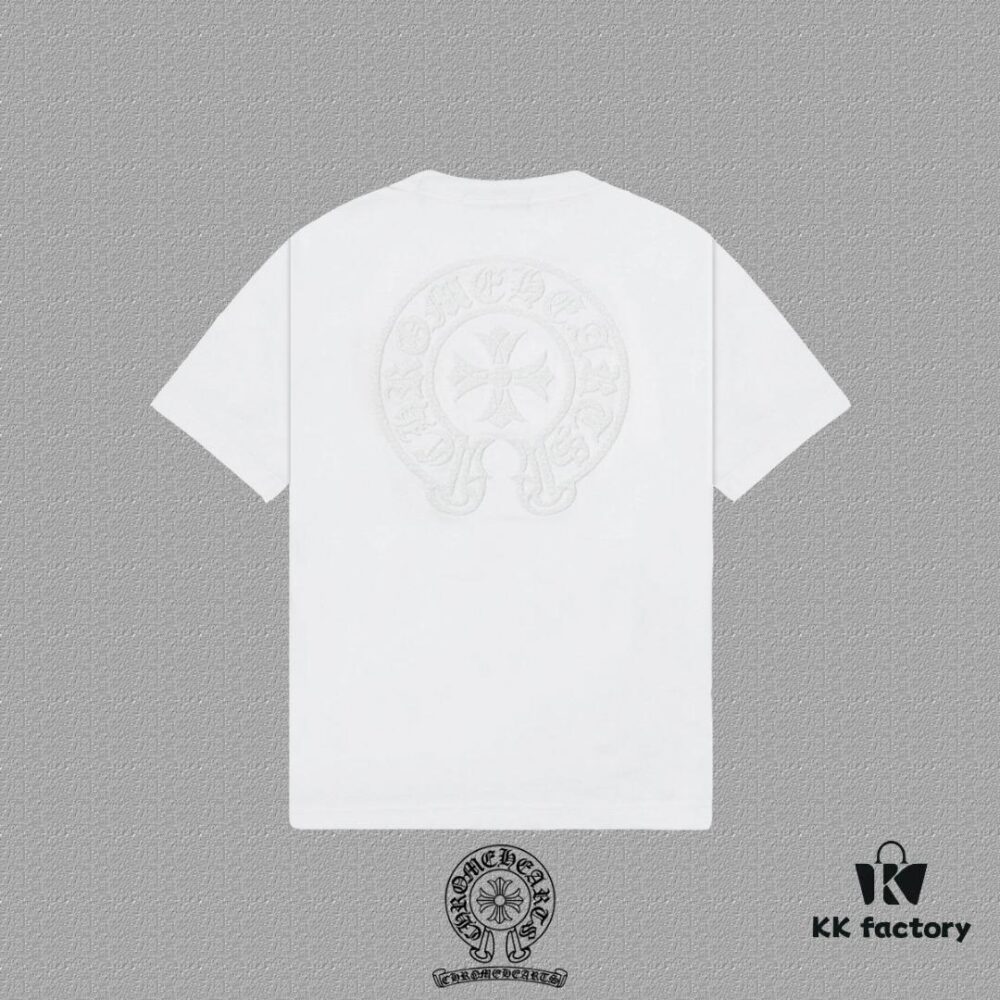 CH Chrome Hearts 2025FW Short Sleeve T-Shirt with Applique Embroidery, Premium 26s Double Yarn 300g Fabric, Heavyweight Material, Custom Spandex Rib Knit Dyed Together, Complete Three Labels, Unisex Style
