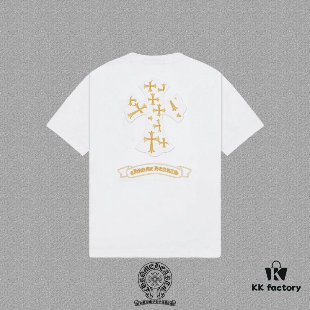 CH Chrome Hearts 2025FW Short Sleeve T-Shirt with Applique Embroidery, Premium 26s Double Yarn 300g Fabric, Heavyweight Material, Custom Spandex Rib Knit Dyed Together with Body, Three Labels Complete, Unisex Design