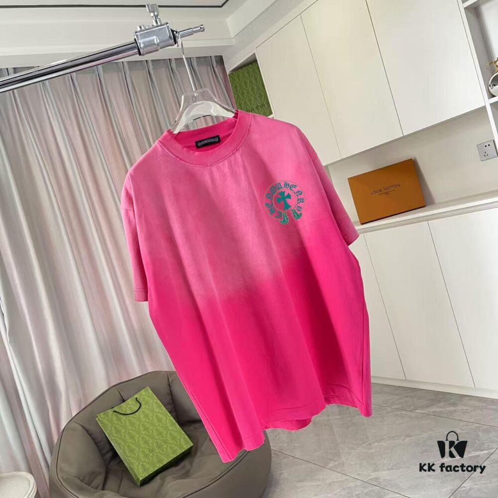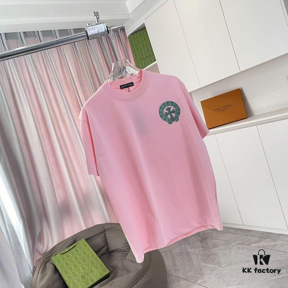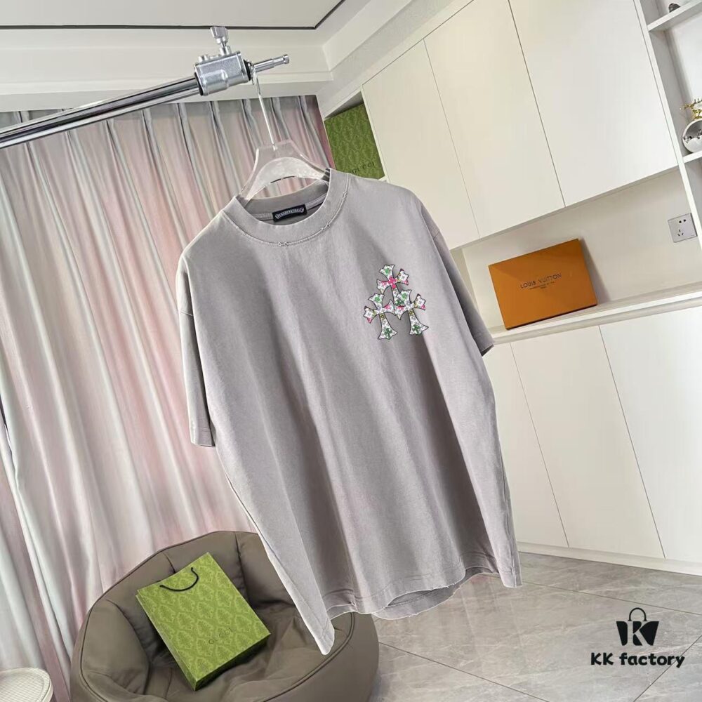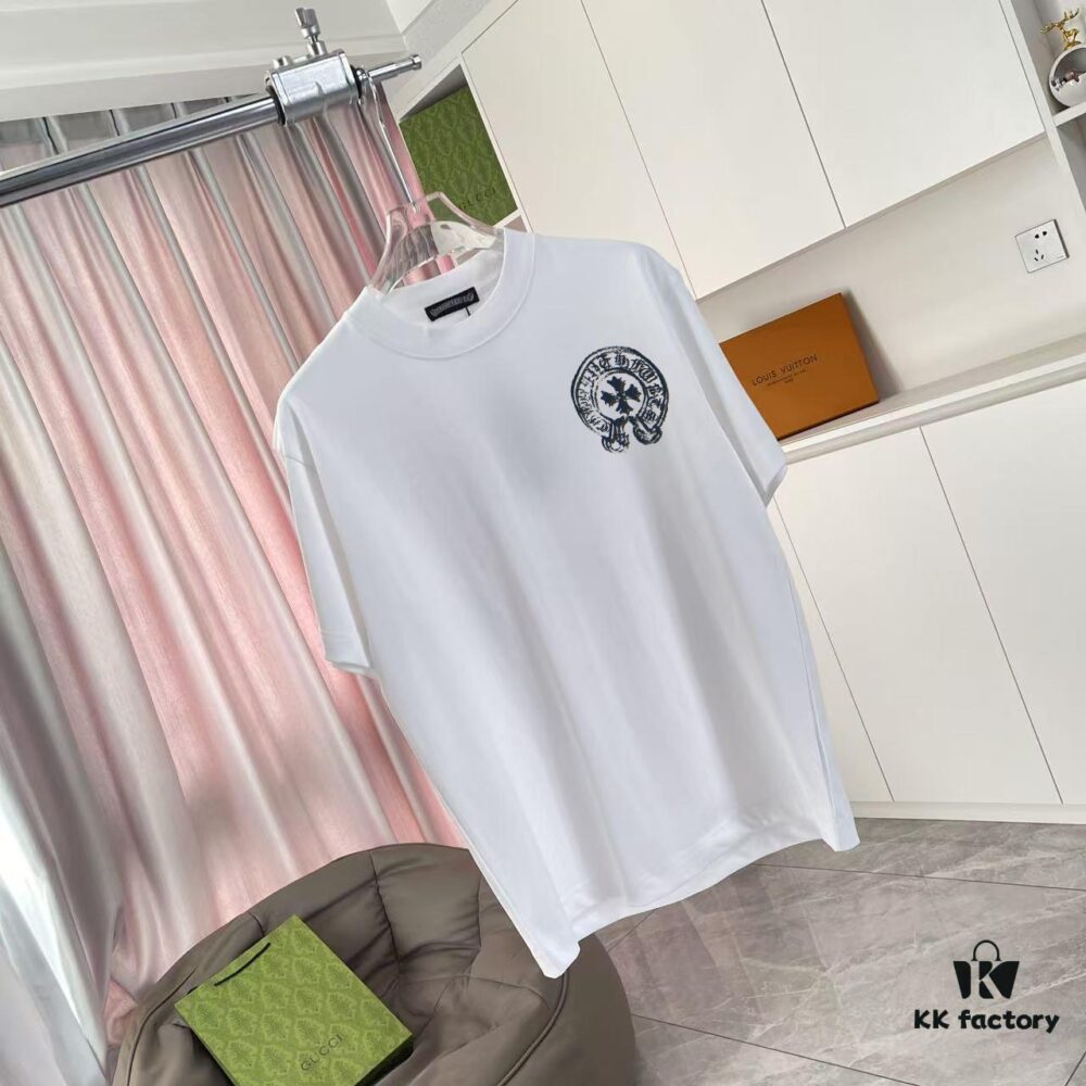 CH Crochet 2025 Summer New Arrival Buddhist Scripture Cross and Horseshoe Print Short Sleeve T-Shirt Custom 300g Fabric Unisex