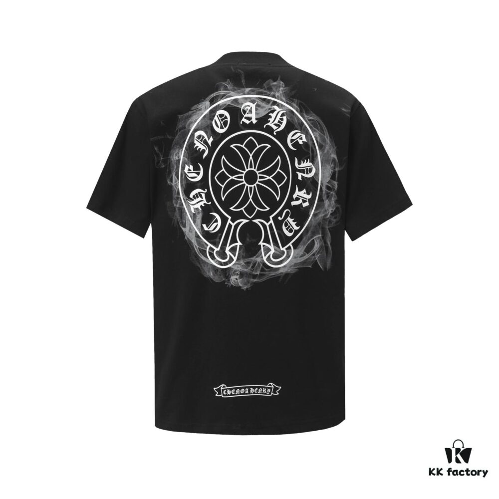 CH* Chrome Hearts* 2025 Spring/Summer New Arrival Distressed Vintage Round-Neck Short-Sleeve T-Shirt with Chest and Back Logo, Horsehoof Print, Custom Fabric Unisex Tee