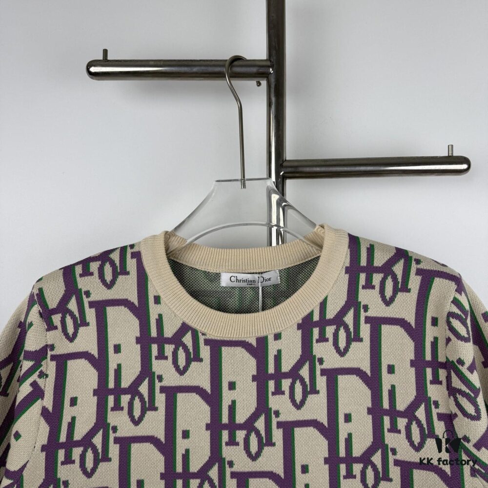 New DIOR Knit Round-Neck Sweater Full Print Jacquard Monogram Short-Sleeve Unisex T-Shirt