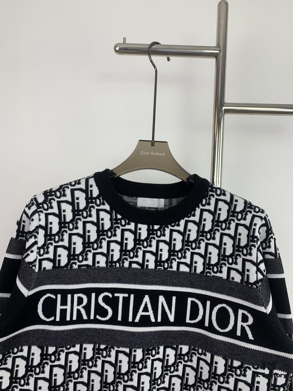 New Dior Knit Pullover Sweater with DIOR Logo Stripe Print in Contrasting Colors, Minimalist Runway Design Featuring Wool Blend and Elegant Black-and-White Aesthetic