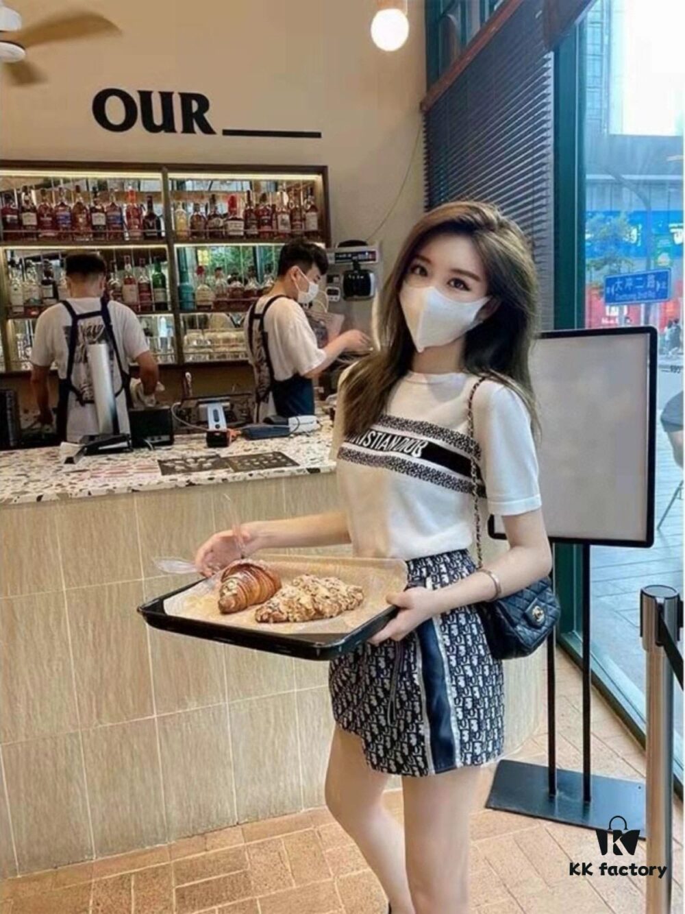New Dior DIOR Jacquard Knit Short-Sleeve Slim-Fit Elastic T-Shirt, Unisex Design, Classic Collection, Smooth and Breathable Fabric, High-Quality Craftsmanship