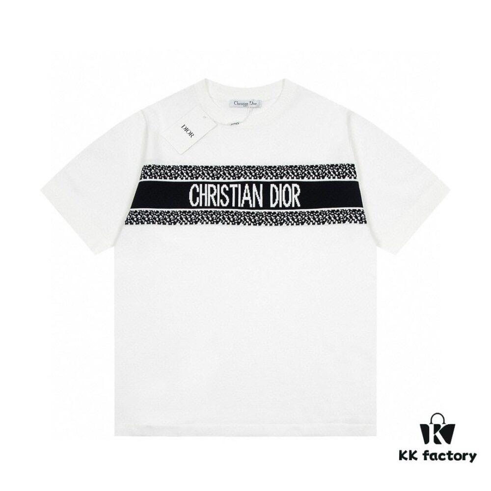 New Dior DIOR Jacquard Knit Short-Sleeve Slim-Fit Stretch T-Shirt, Men’s and Women’s Unisex Style, Classic Collection, Smooth and Breathable Fabric, High-Quality Craftsmanship