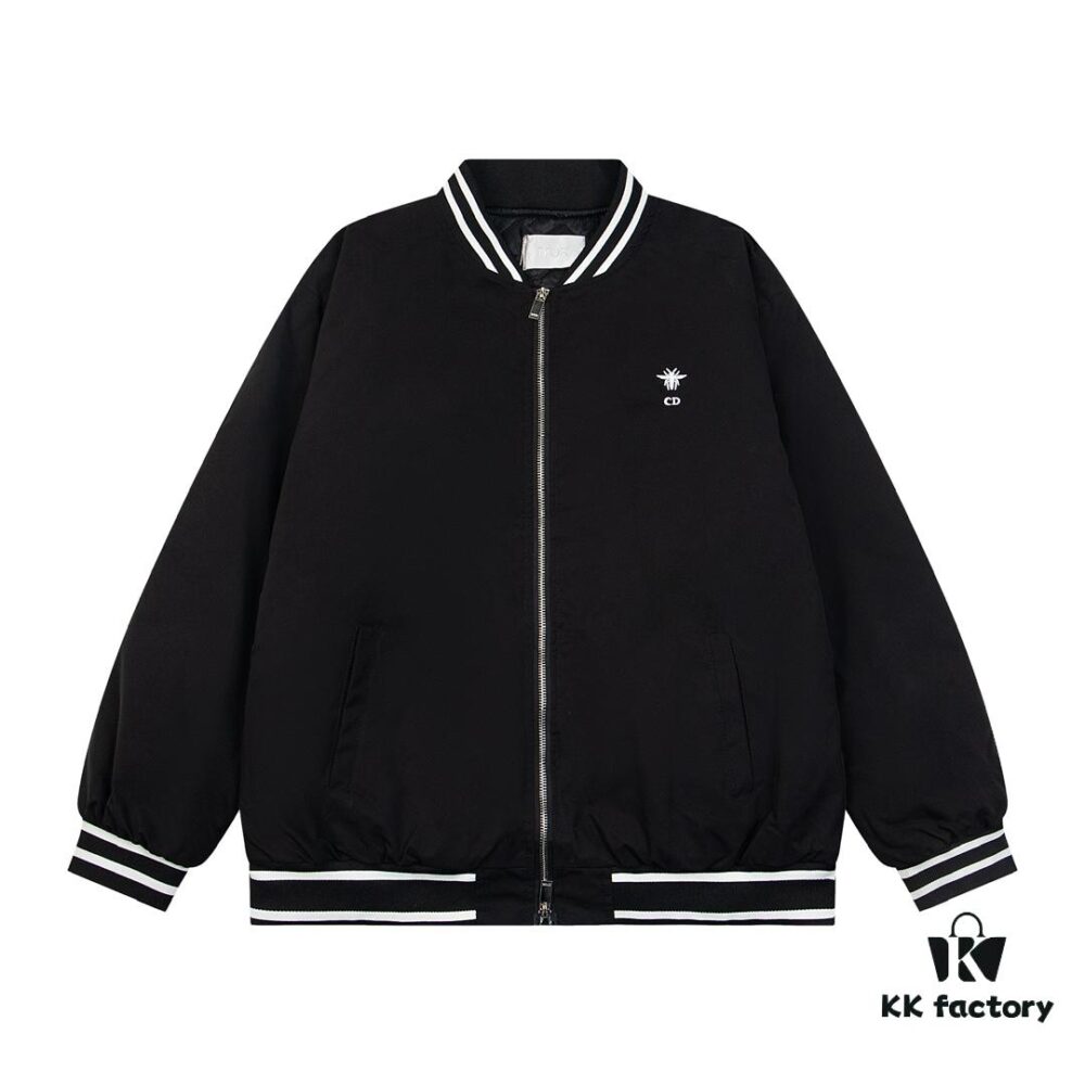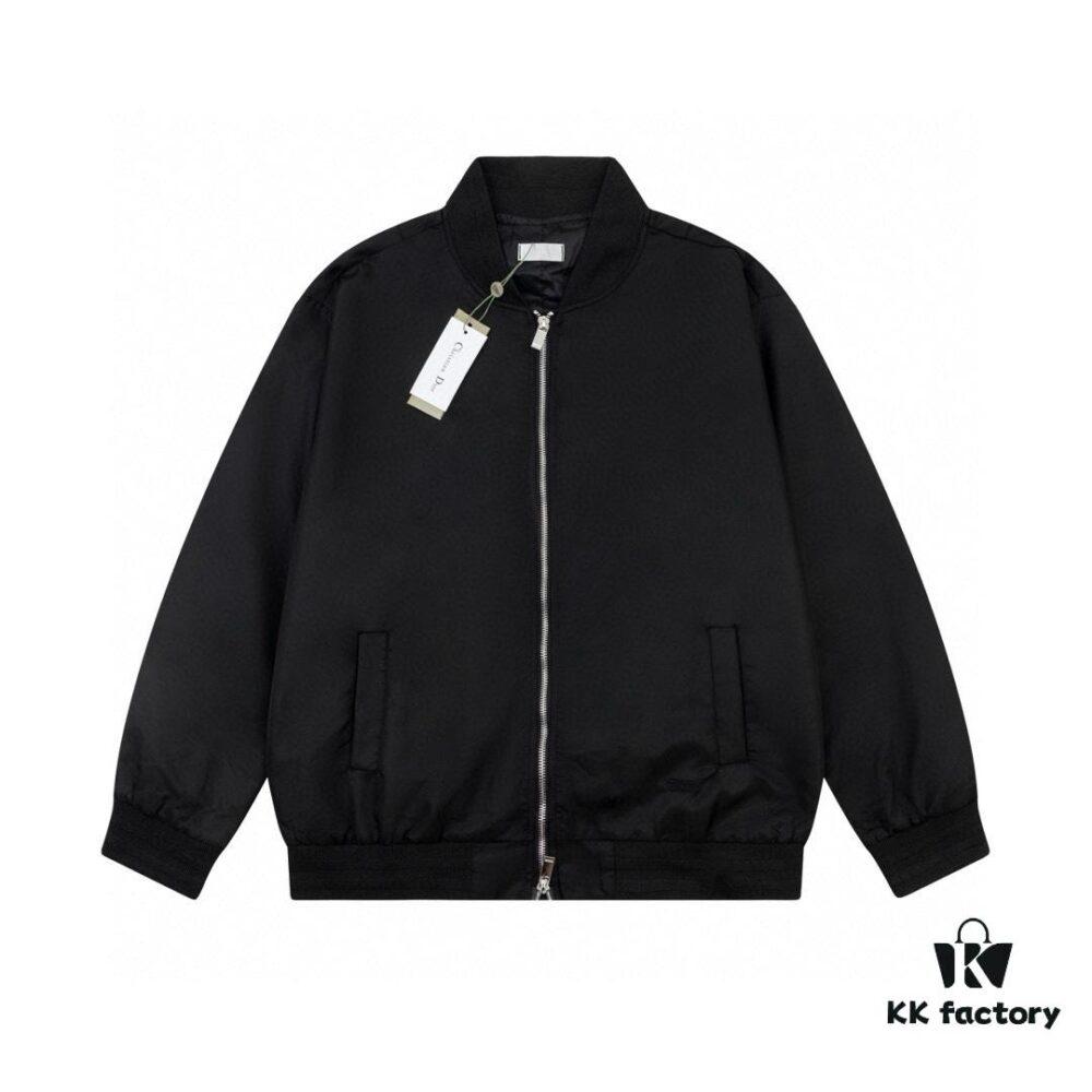 DIOR 2023SS Embroidered Back Pilot Jacket – Crafted from Textured Cotton Blend with Contrast Christian Dior Couture Back Embroidery and Tonal Dior Front Logo, Ribbed Collar, Cuffs and Hem, Unisex Design