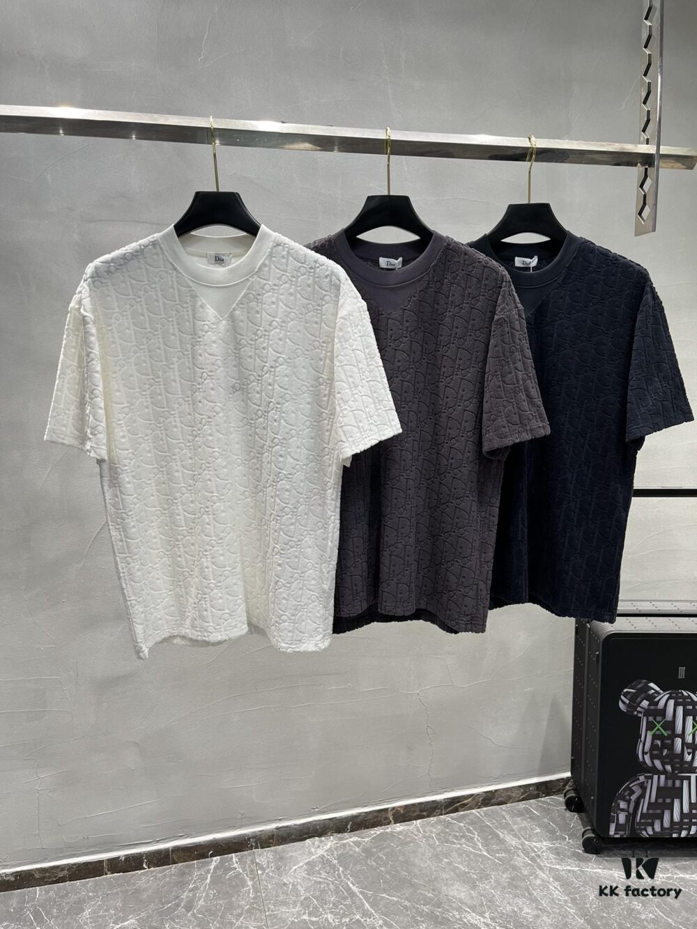 Dior 25S New Arrival Original Order T-Shirt, Xiaohongshu Popular Style! Custom Original Terry Fabric Letter Jacquard, Classic Short-Sleeve Dior Fashion Trend, Solid Color Design, Stylish and Versatile