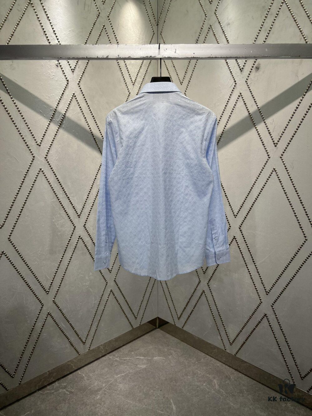 Gucci 25SS New Arrival Cotton Shirt in Light Blue and Ancho Red with GG Shadow Print