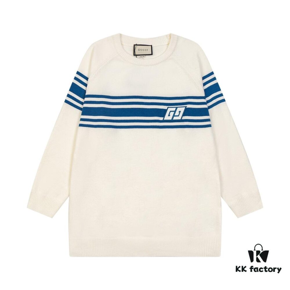 GUCCI Crew Neck Jacquard Sweater Unisex High-Density Wool Blend Premium Knitwear White