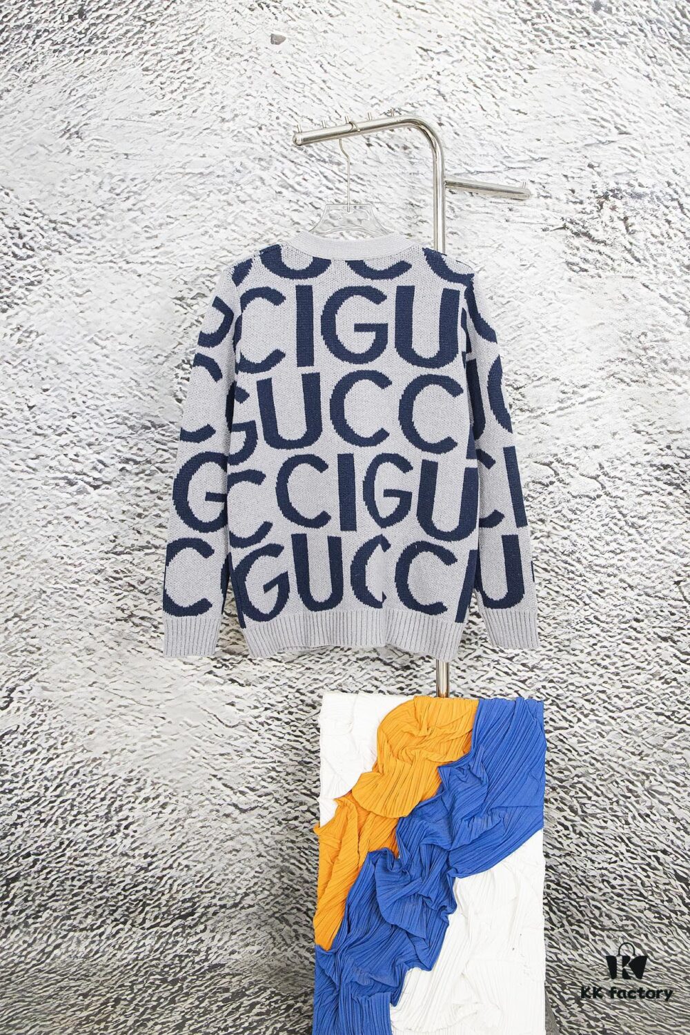 GUCCI Men’s and Women’s Double G Logo Knit Cardigan Polo Collar Ivory White Wool-Blend High-Quality Craftsmanship