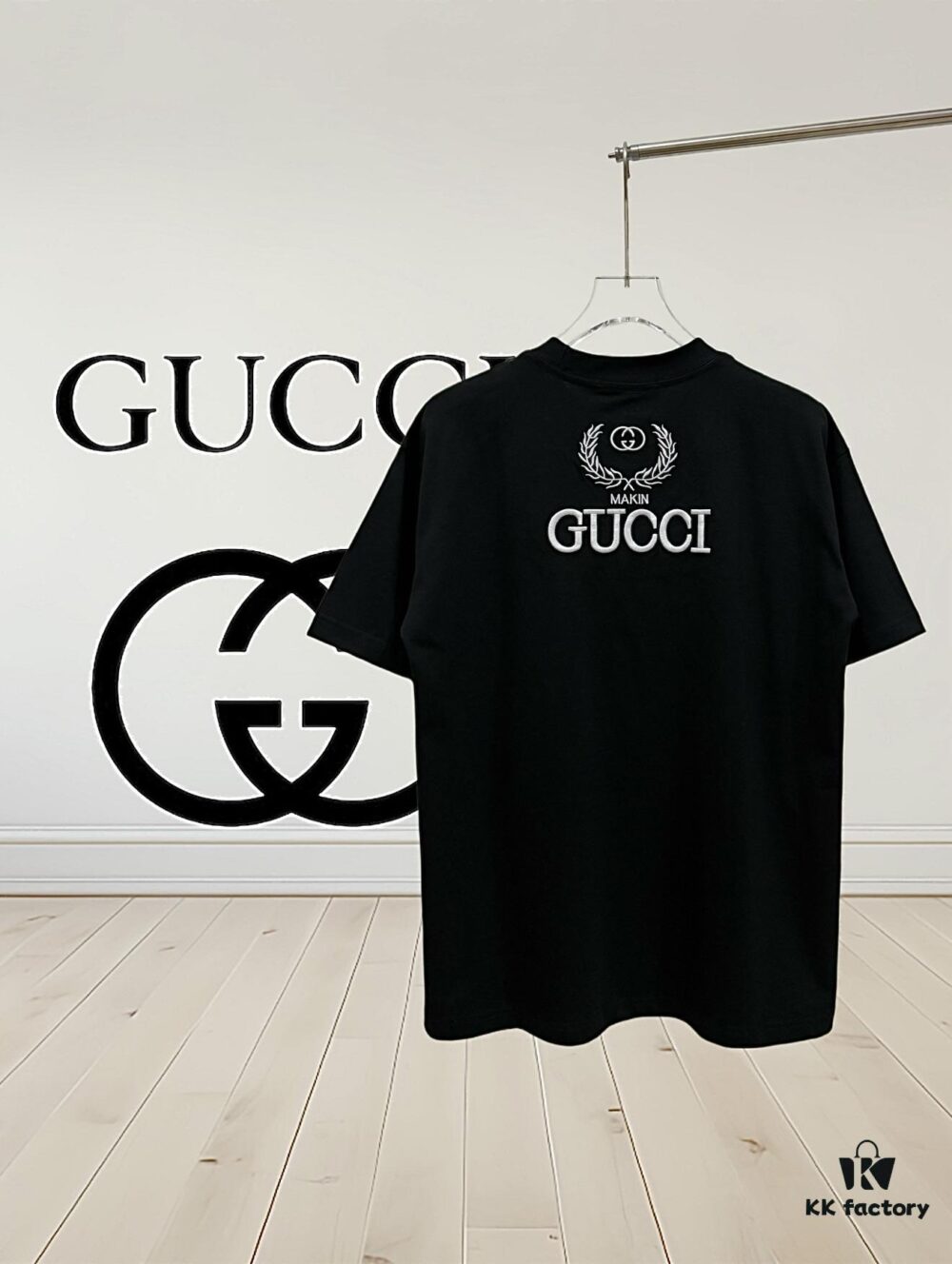 High-End Gucci Round Neck Short Sleeve T-Shirt with Front and Back Embroidered Logo, Premium 280g Double-Yarn Combed Cotton, Pre-Shrunk Washed Fabric, Unisex Fit, Official Website Detailing, Three Labels Complete