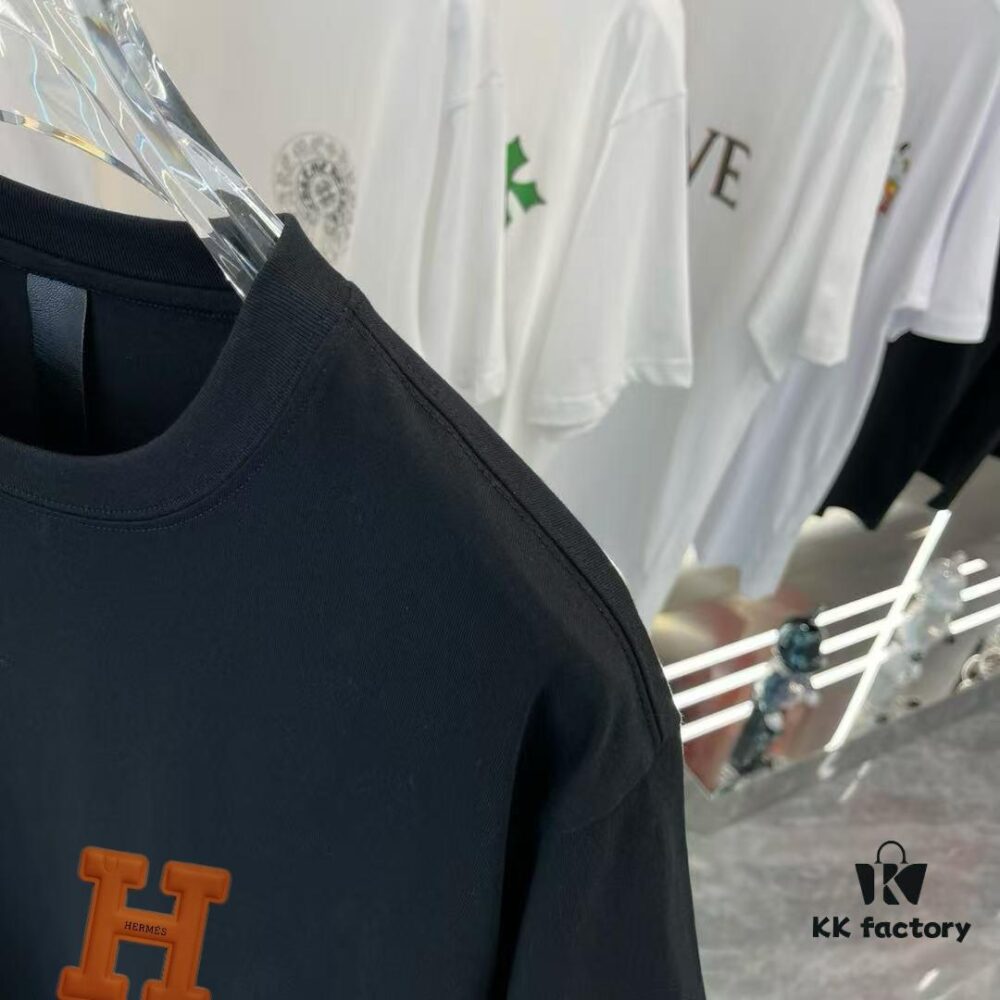 Hermes 2025 Spring Collection Short Sleeve T-Shirt with Handcrafted Logo, Premium 260g Cotton Fabric, OS Drop-Shoulder Design, Unisex and Versatile