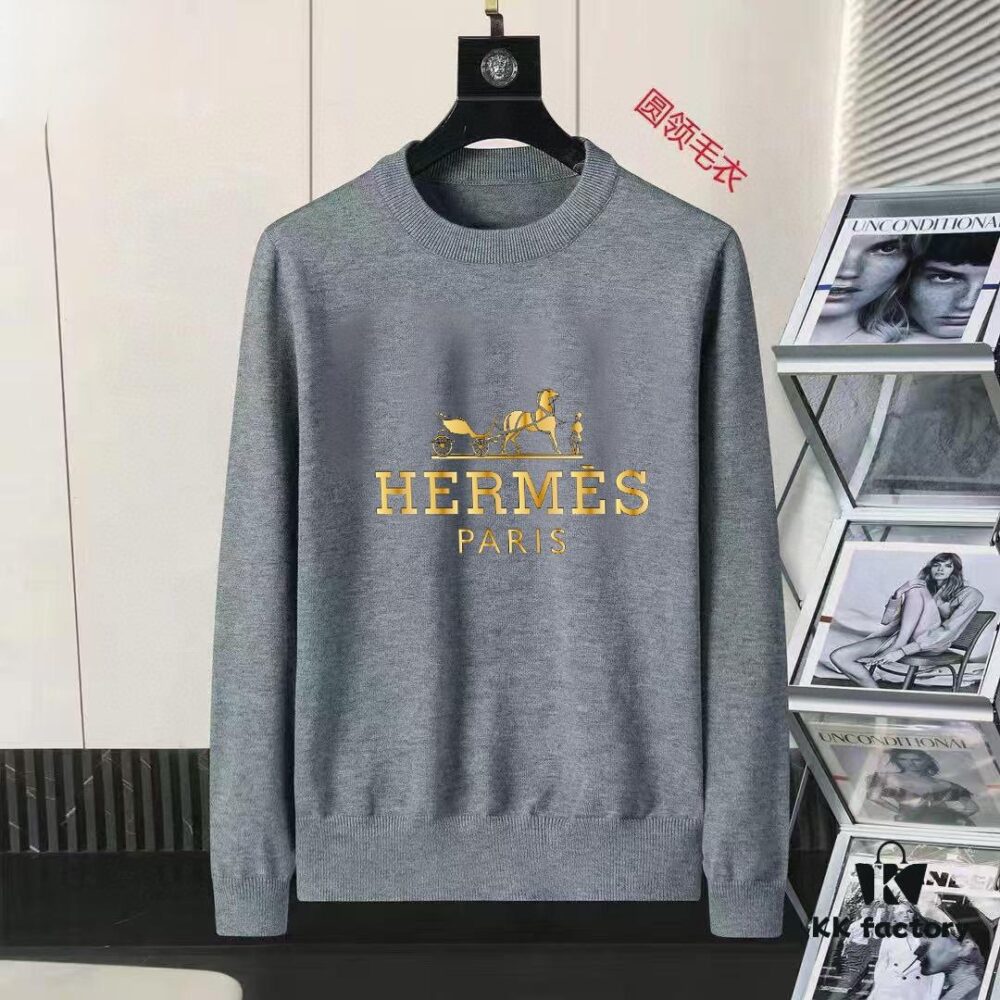 Hermes Men’s Autumn-Winter Classic Round-Neck Wool Pullover Sweater, 2025 New Arrival, Slim-Fit Premium Blend Wool Knitwear with Contrasting Logo, Timeless Elegance and Versatility