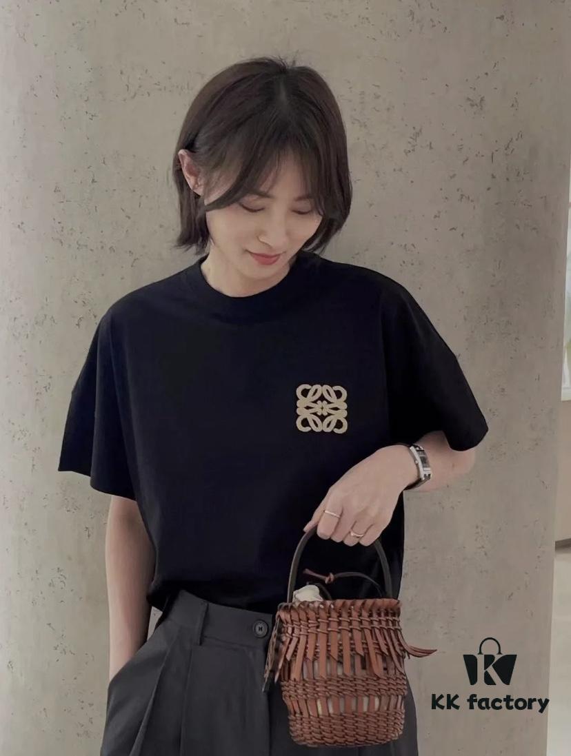 LOEWE New Arrival Towel Embroidery T-Shirt, High-Quality 280g Double-Yarn Cotton Fabric, Soft and Comfortable Wear, Heavyweight Smooth Cotton Washed Feel, Premium Front Letter Towel Embroidery with Special Craftsmanship, Custom Dyeing, Full Branding, Not Ordinary Market Version