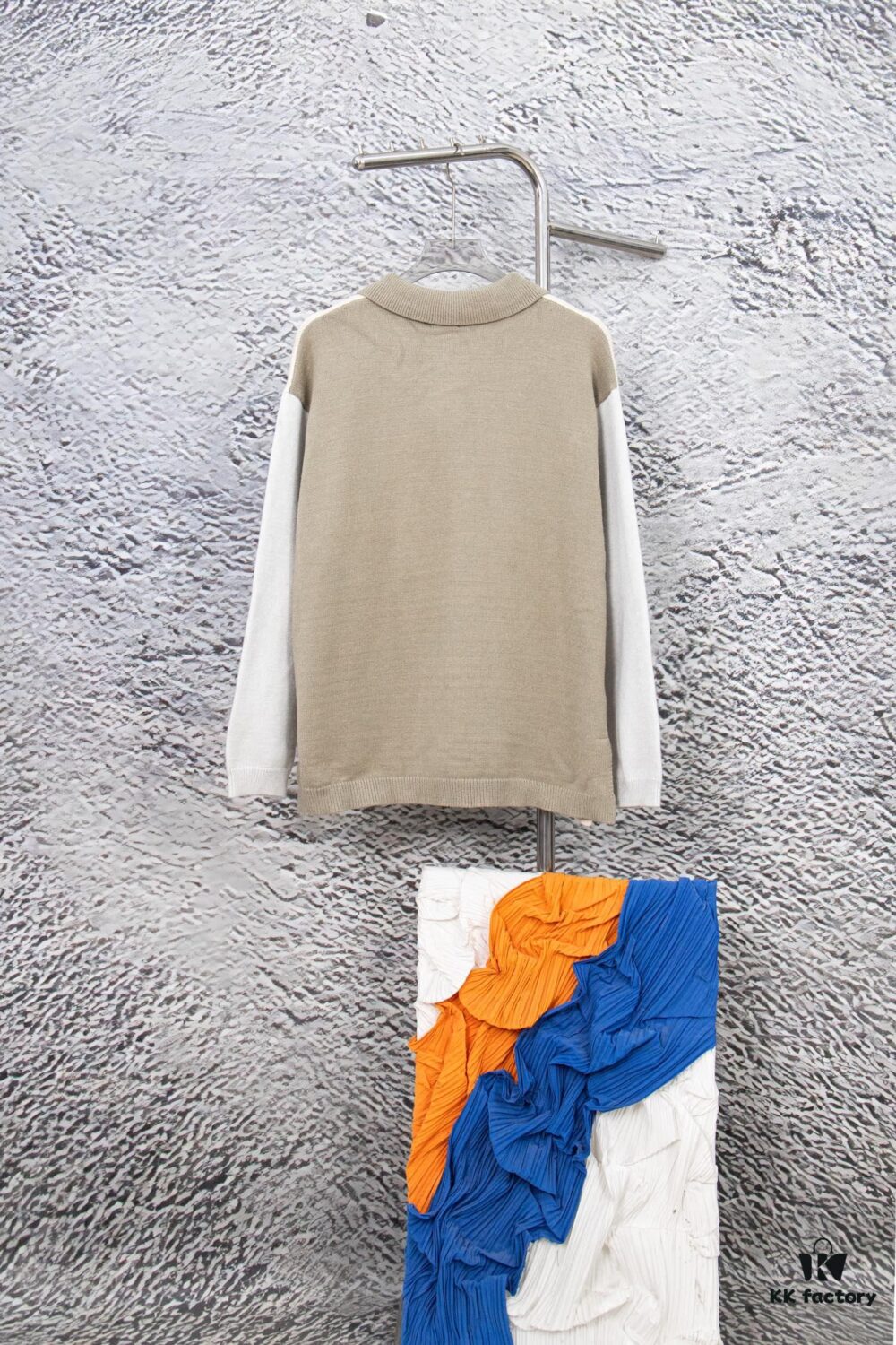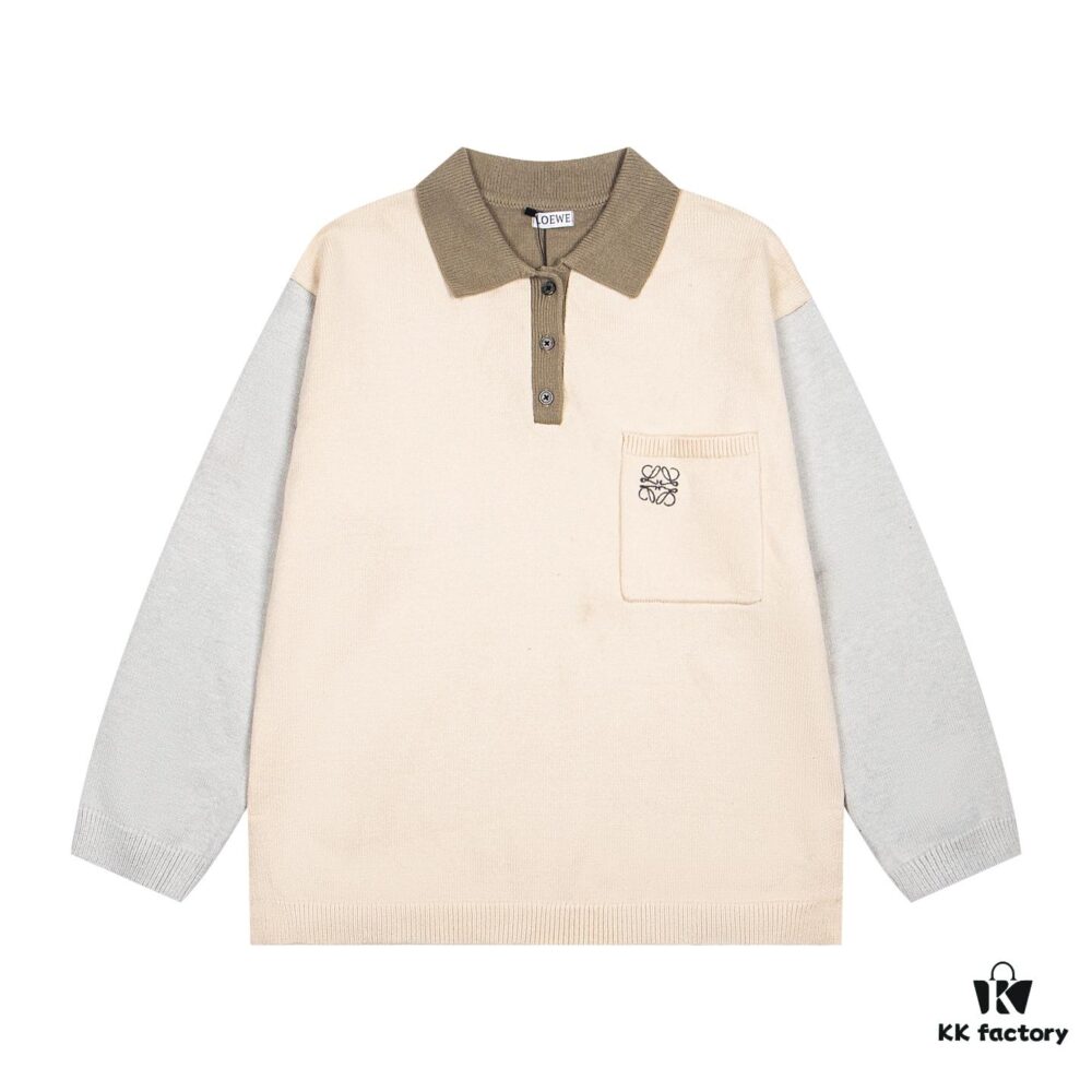 New Loewe Colorblock Embroidered Collar Preppy Polo Knit Sweater with Side Slits