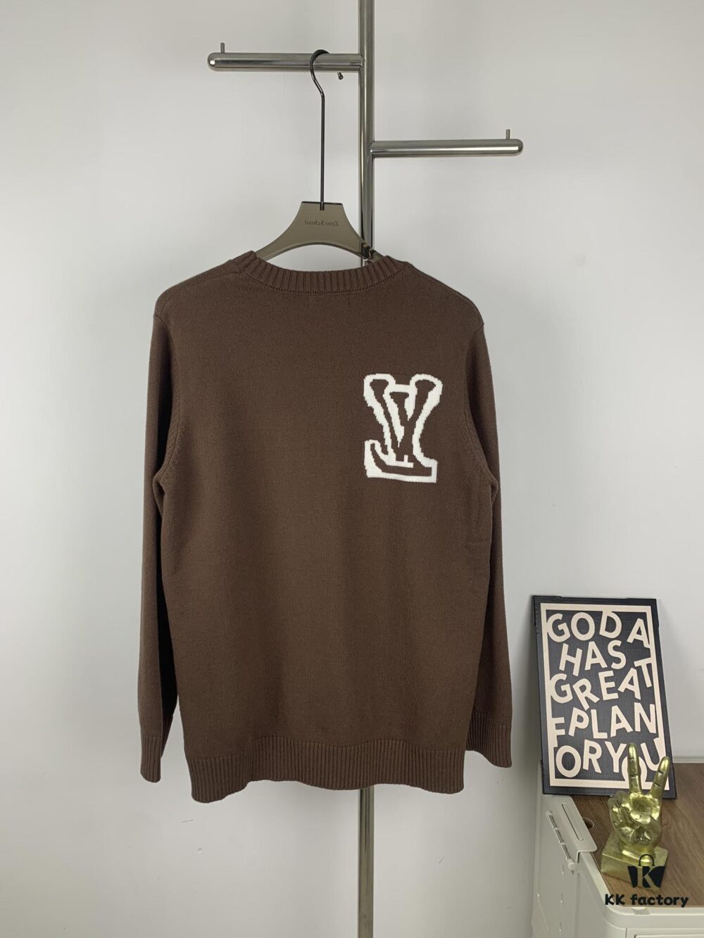 New LV Louis Vuitton White Knitted Logo Beige and Coffee Color Crew Neck Sweater Unisex