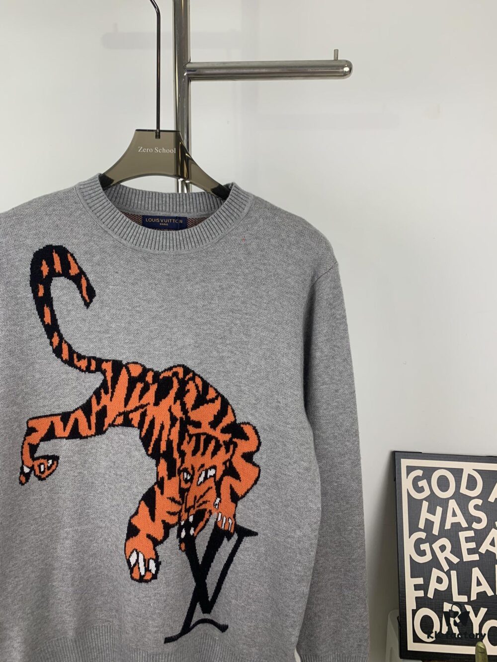 New LV Louis Vuitton Tiger Logo Sweater 2022 Limited Edition for Year of the Tiger, Double-Sided Wool Knit with Tiger Motif