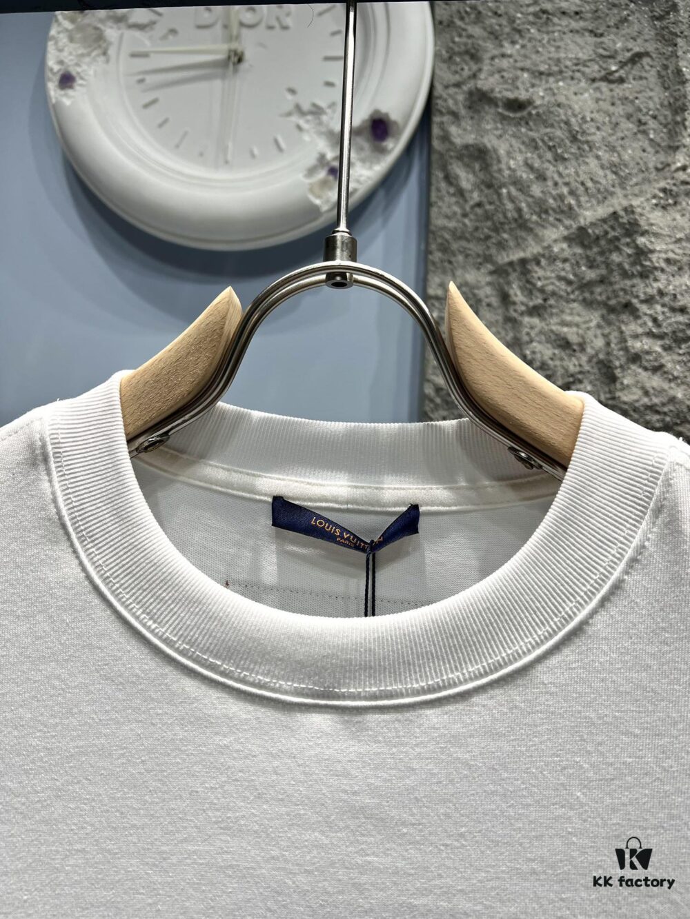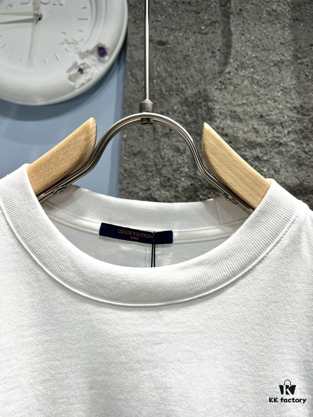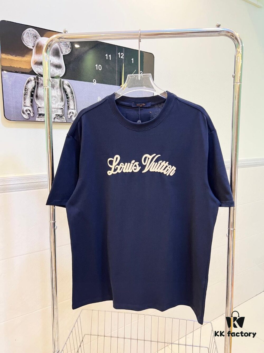 LOUIS VUITTON Embroidered New Short Sleeve T-Shirt, High-Quality 280g Double Cotton Yarn Fabric with Smooth Nylon and Washed Cotton Feel, Premium Embroidery on Front and Sleeves, Fashionable Design with Special Craftsmanship, Custom Dyed and Matched to Official Website