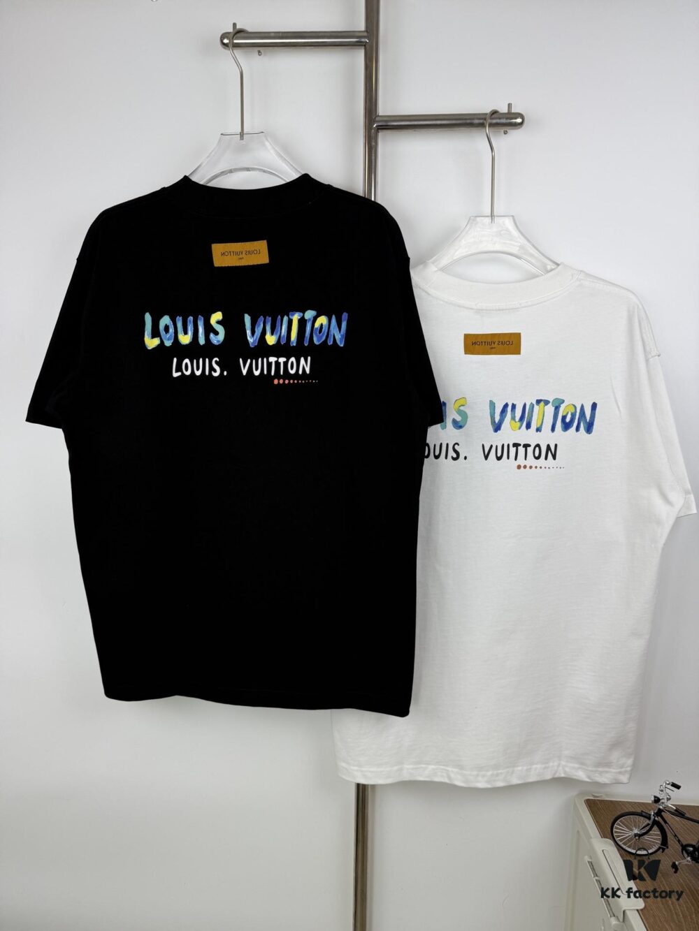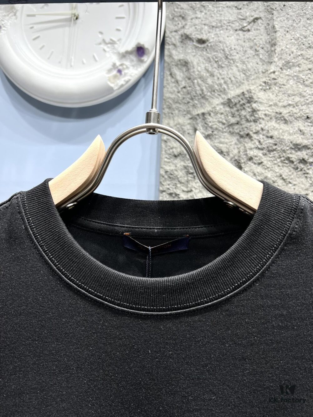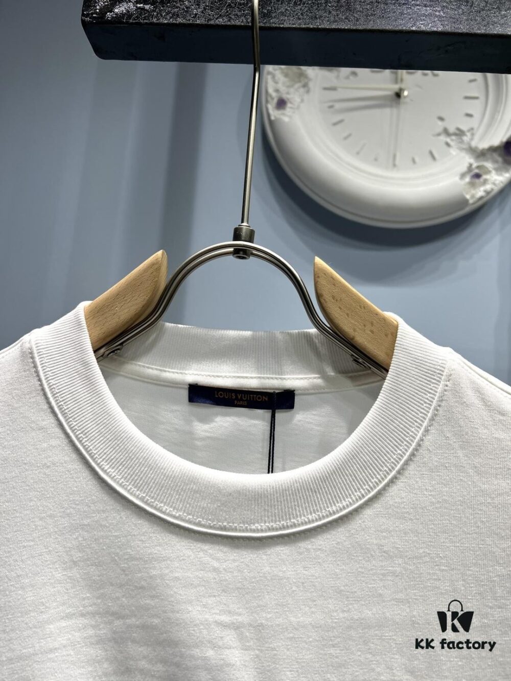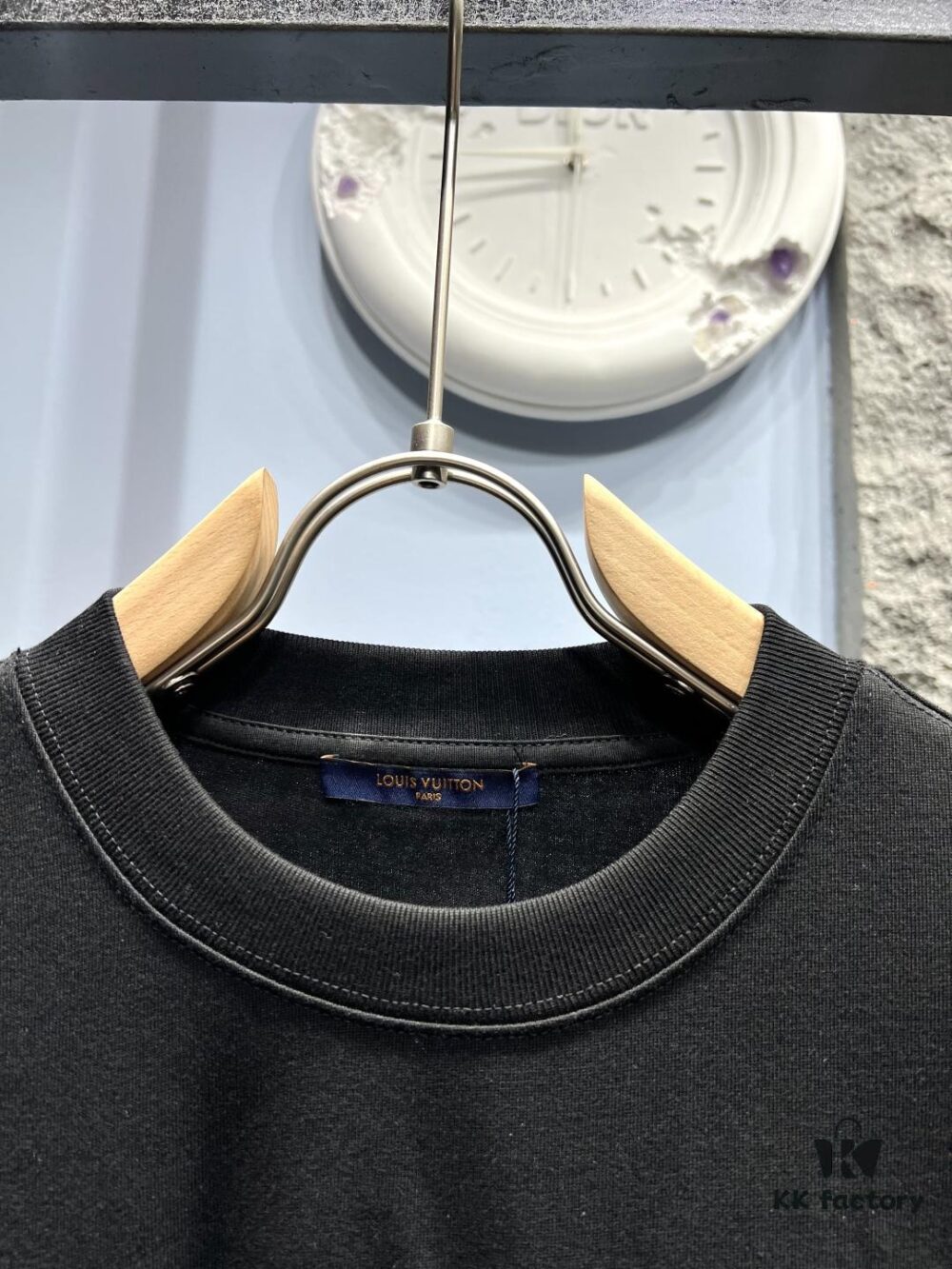 LOUIS VUITTON Embroidered New Short Sleeve T-Shirt, High-Quality 280g Double Cotton Yarn Fabric with Smooth Nylon and Washed Cotton Feel, Premium Embroidery on Front and Sleeves, Fashionable Design with Special Craftsmanship, Custom Dyed and Matched to Official Website