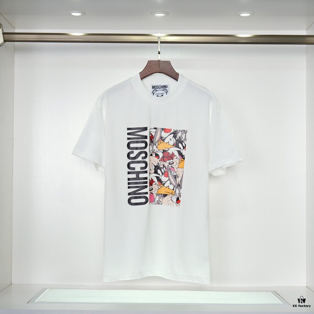 New Arrival Moschino Print T-Shirt, Minimalist Fashion Design with Comfortable Color Matching, Premium 260gsm Pre-washed 100% Cotton Fabric, Soft and Skin-friendly Unisex Tee