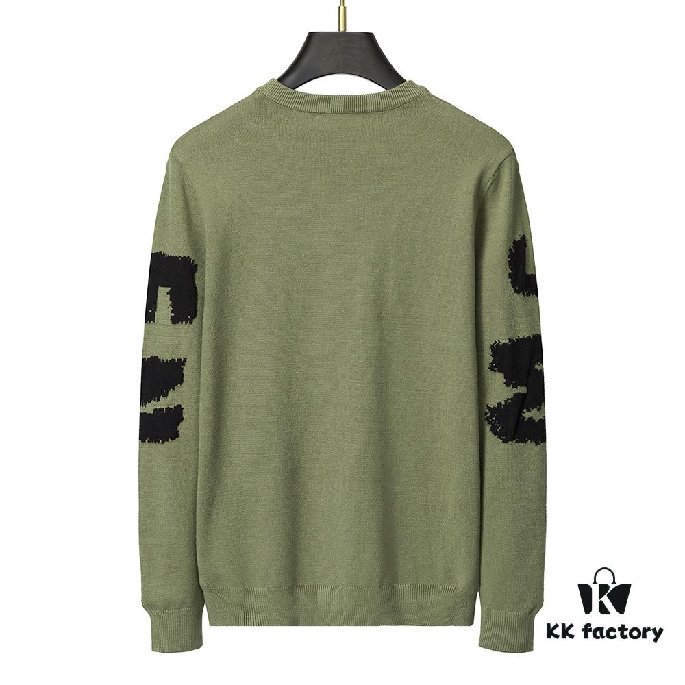 Winter New Round Neck Pullover Sweater 3066# – Classic McQueen Letter Jacquard, Stylish, High-End and Elegant, Thickened Comfortable Warm Clothing in Military Green