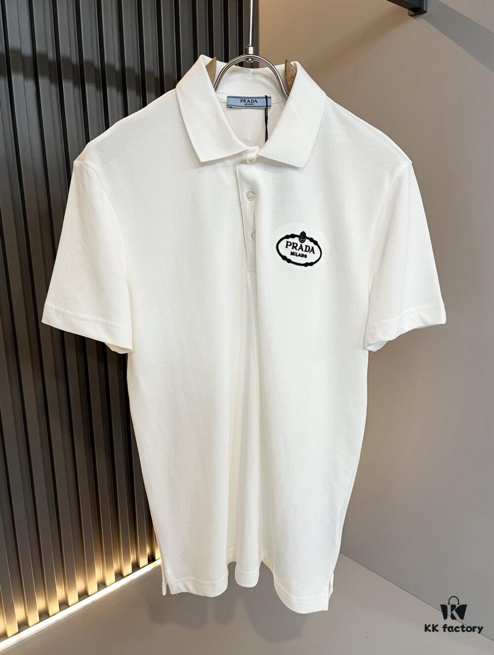 Prad* P*da 2025 Spring and Summer New Arrival Classic Short-Sleeve Polo Shirt Made from 100% Imported Premium Piqué Cotton with Embroidered Chest Logo