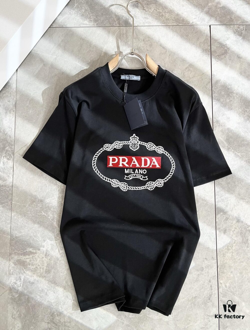 PRADA 2025 Spring/Summer New Unisex Short Sleeve T-Shirt, Exclusive Launch – Classic and Fashionable Design with Signature Logo Embroidery, Made from 100% Imported Pure Cotton