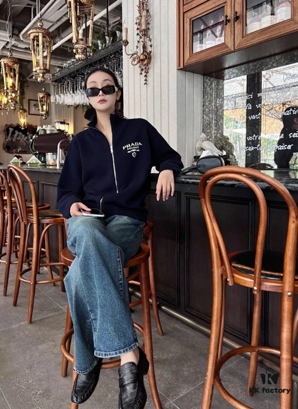 Prada Jacquard Letter Knit Sweater Coat Y077