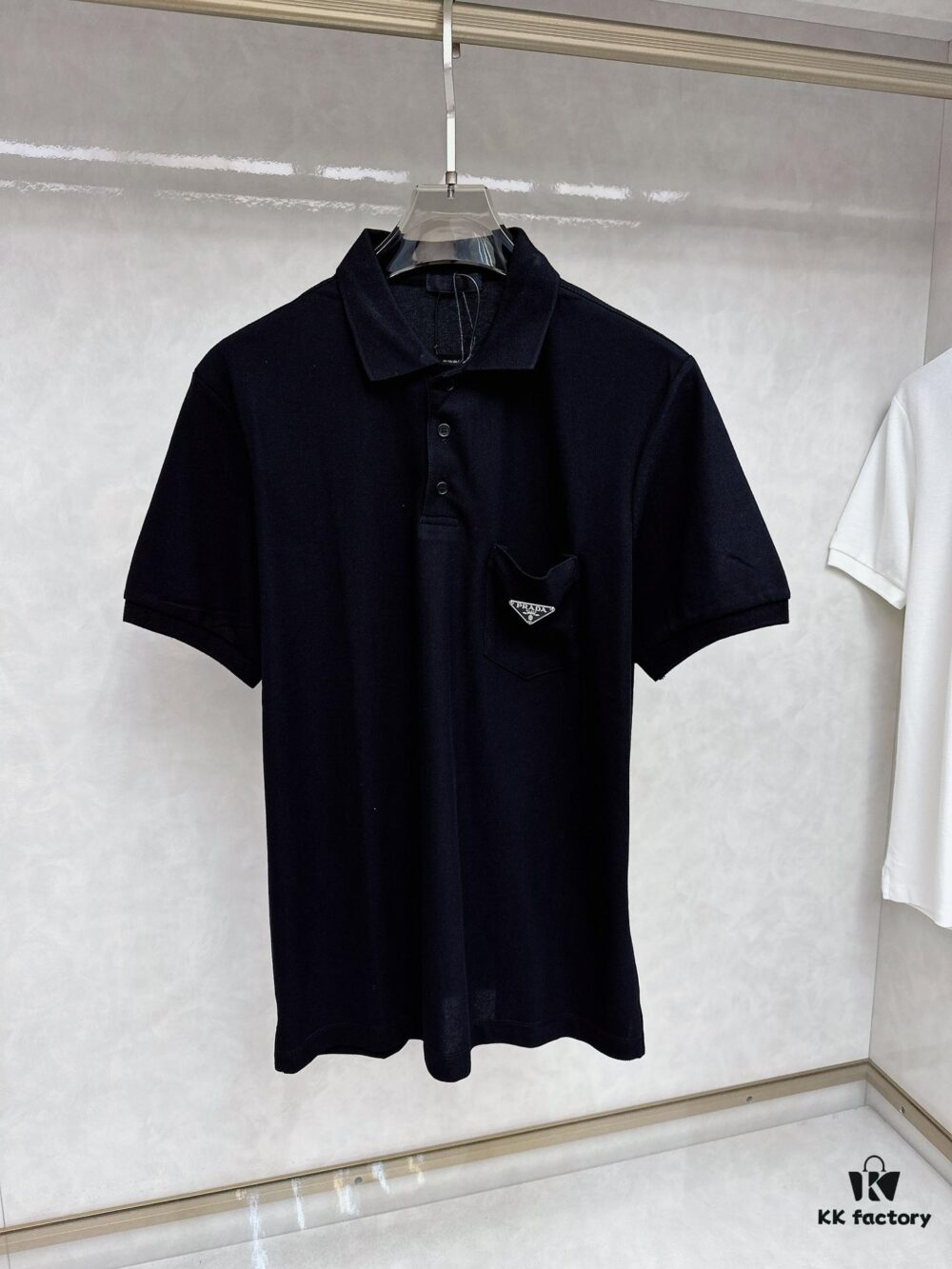 PRADA Men’s Polo Shirt with Lapel, Nylon Pocket Zipper Design, Brand Triangle Logo Metal Badge, Original Quality, Full Tags Included