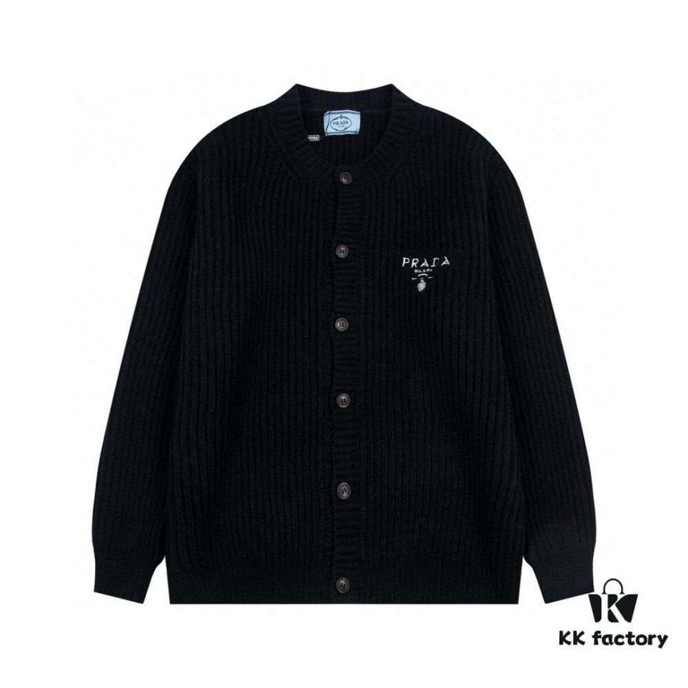 PRADA Wool Cardigan, Coarse Knit, Premium Craftsmanship, Imported Yarn with Soft Finish, Embroidered Chest Logo, Authentic Reproduction