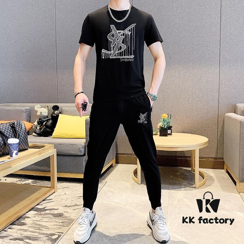 YSL Saint Laurent 2025 New Men’s Short Sleeve T-Shirt and Shorts Set! Official Website Synchronized Sales! High-End Version on Market! Exquisitely Soft and Smooth Texture for Ultimate Comfort! Excellent Three-Dimensional Tailoring and Silhouette!