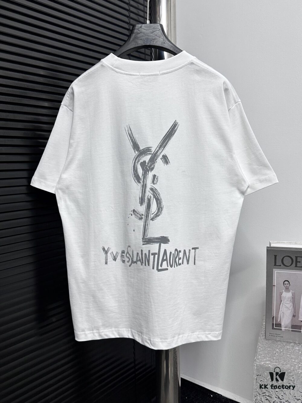YSL Saint Laurent 260g Cotton Crew Neck Short Sleeve T-Shirt, Classic Minimalist Design with Embroidered Logo, Fashionable and Versatile Style