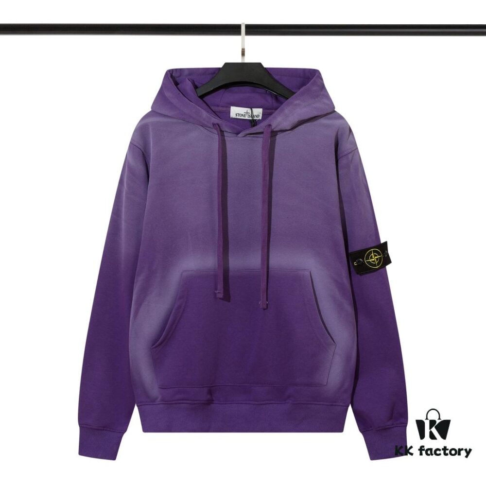 STONE ISLAND Autumn/Winter New Arrival Washed Monkey Process Hooded Sweatshirt in French Terry Fabric Black Military Green Sapphire Blue Light Green Purple Lavender M L XL XXL