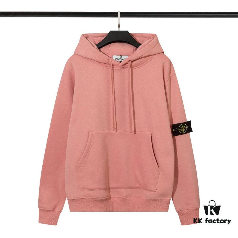 STONE ISLAND Autumn-Winter New Fleece-Lined Hooded Sweatshirt in Black, White, Light Green, Light Blue, Light Pink, Heather Gray, Brownish Gray